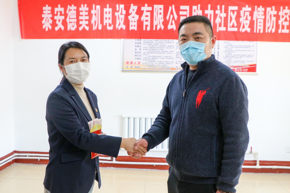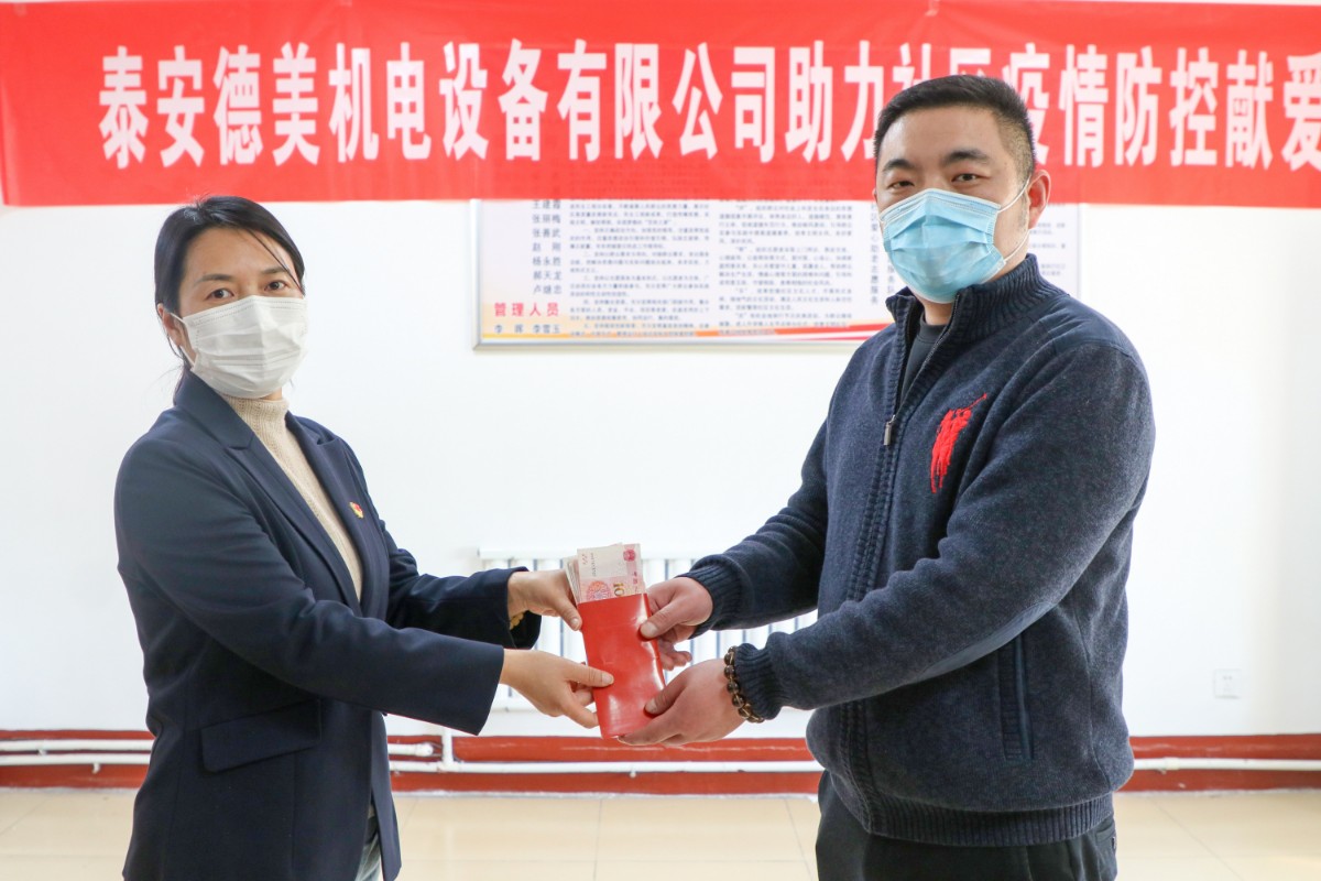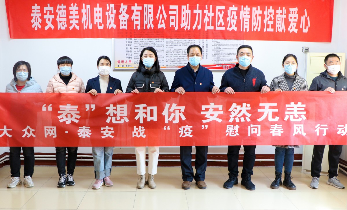 在疫情防控關(guān)鍵時(shí)期,泰安德美機(jī)電設(shè)備有限公司作為泰安國際商會(huì)副會(huì)長(zhǎng)單位、泰山區(qū)政協(xié)委員獻(xiàn)出愛心,通過市貿(mào)促會(huì)、區(qū)貿(mào)促會(huì)牽線搭橋,為鐵路新村捐贈(zèng)防疫物資,