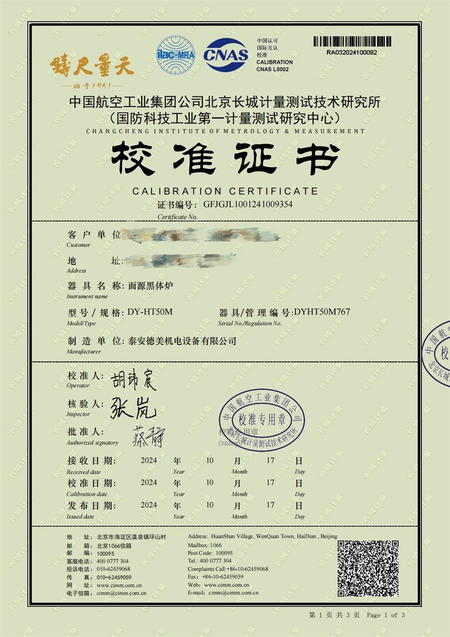 | 上一條:高溫黑體爐(700-1600℃)校準(zhǔn)證書(shū) | 下一條:廉金屬熱電偶檢定爐-校準(zhǔn)證書(shū) |