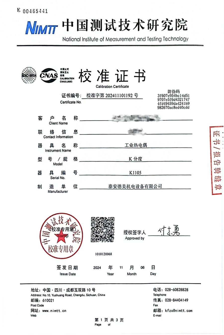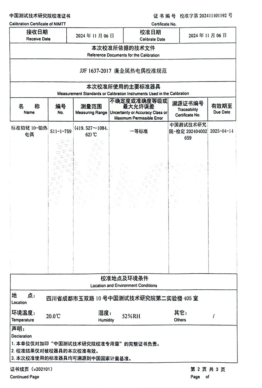 K分度熱電偶校準(zhǔn)證書 2024-11-9 本文被閱讀 8101 次