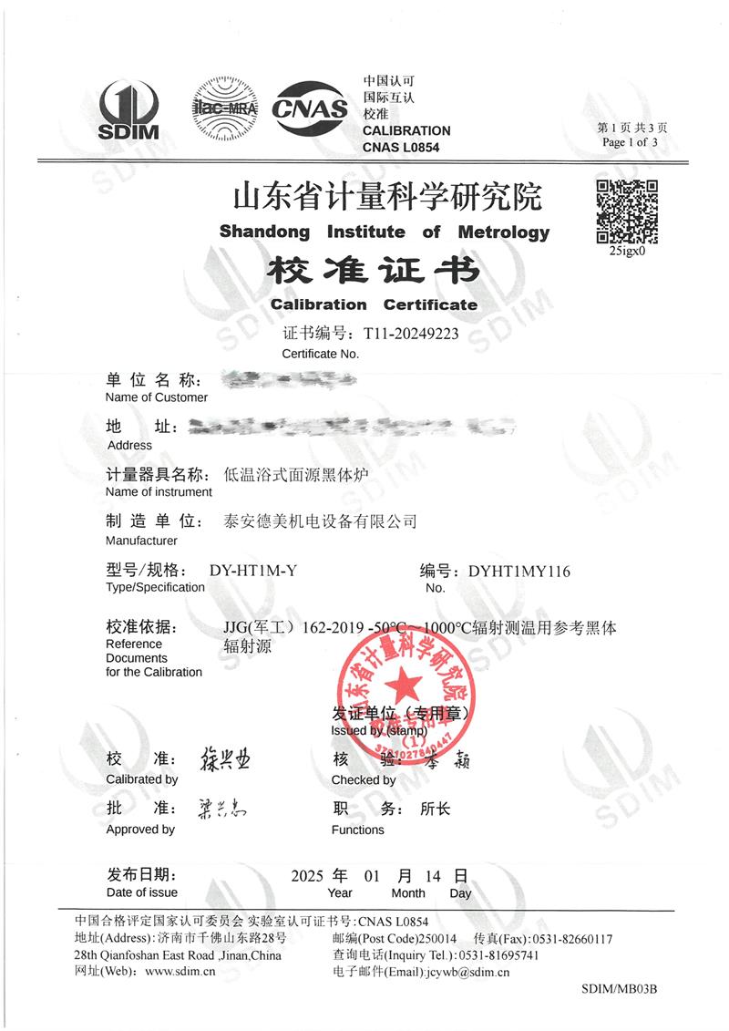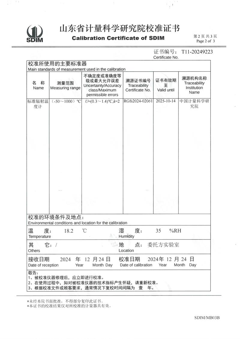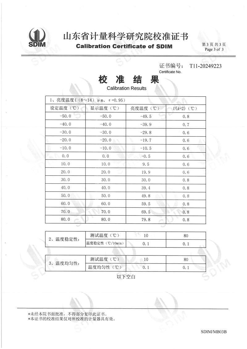| 上一條:中溫干體爐(室溫+5~400℃)校準(zhǔn)證書 | 下一條:廉金屬熱電偶檢定爐-校準(zhǔn)證書 |