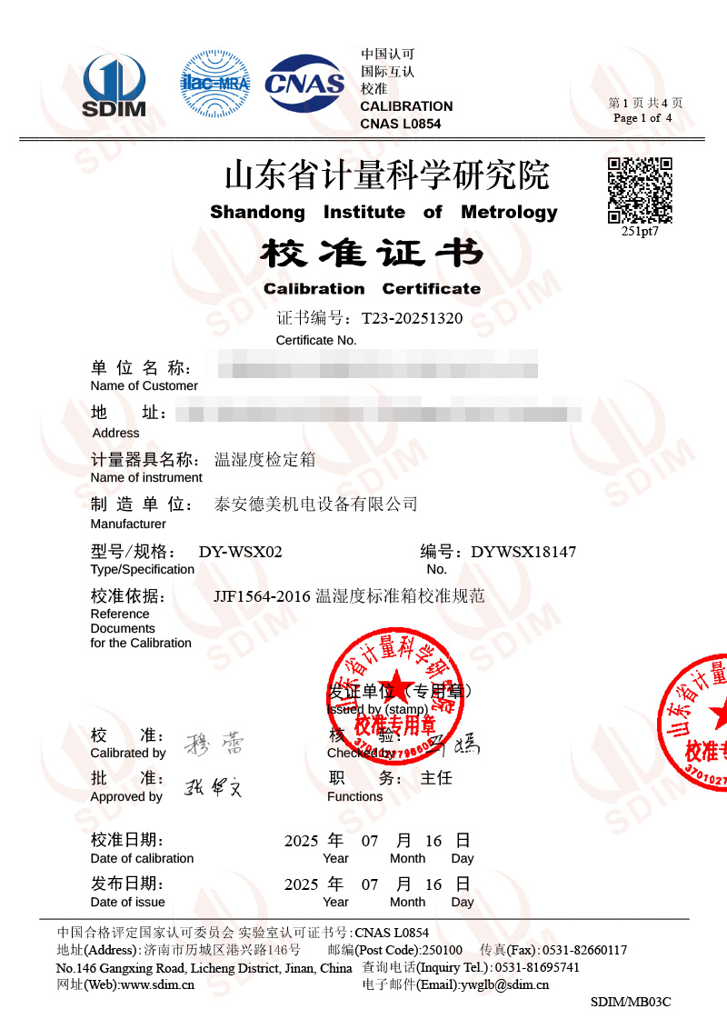 溫濕度檢定箱(5-50℃)校準(zhǔn)證書 2025-7-21 本文被閱讀 2873 次