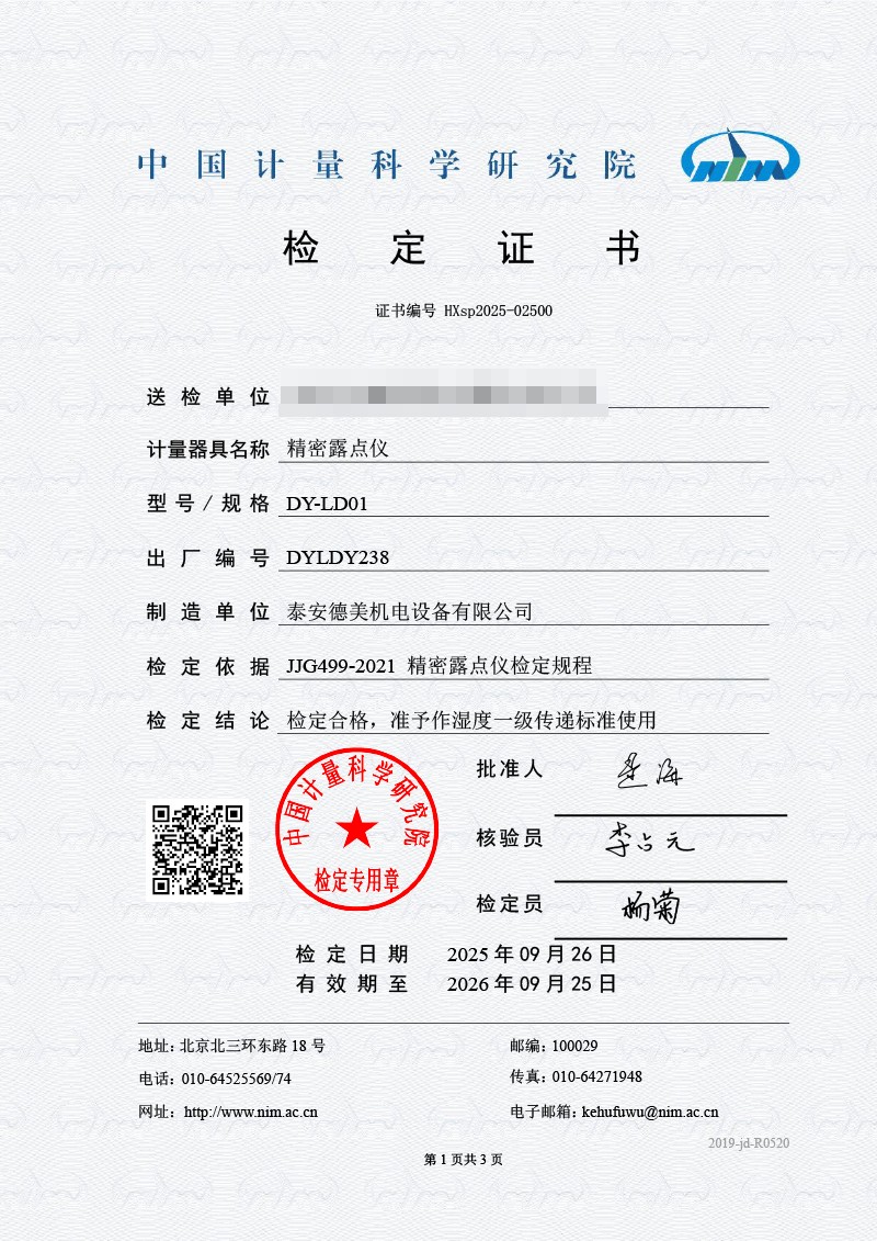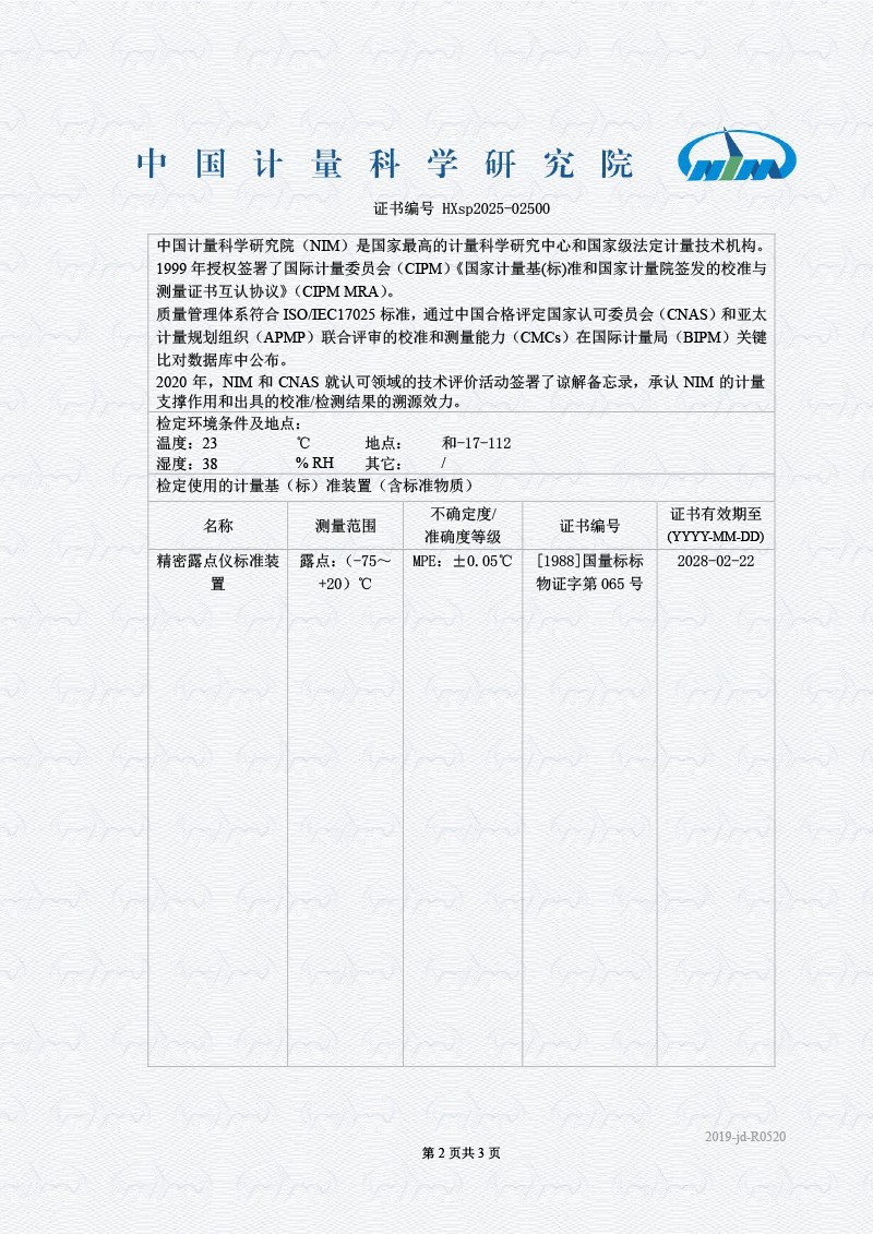 露點儀檢定證書 2025-9-29 本文被閱讀 3402 次