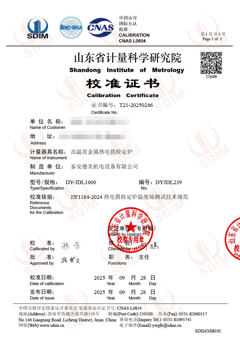 高溫貴金屬熱電偶檢定爐(800-1600℃)校準(zhǔn)證書 2025-10-14 本文被閱讀 2344 次