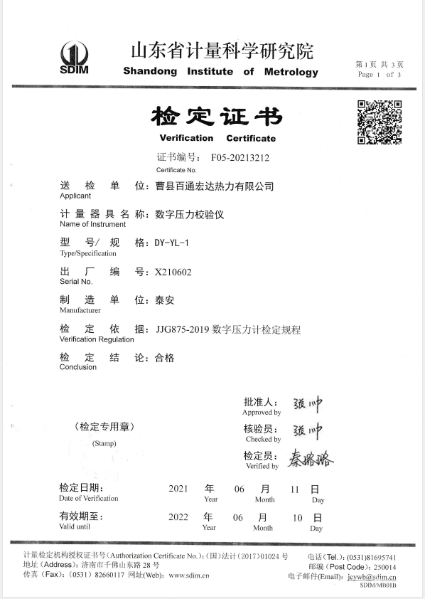曹縣百通宏達熱力有限公司-數(shù)字壓力校驗儀 2021-6-23 本文被閱讀 16422 次