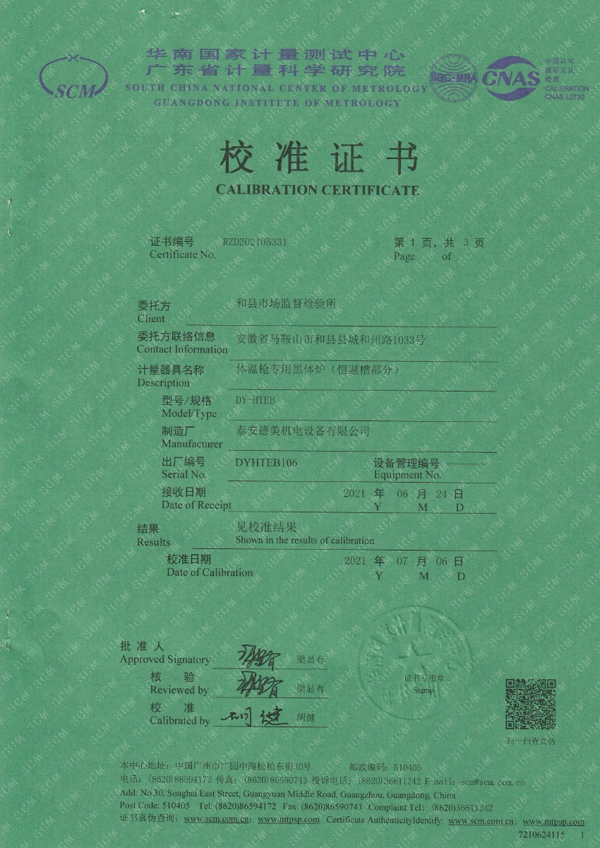 | 上一條:和縣市場(chǎng)監(jiān)督檢驗(yàn)所-耳溫黑體(黑體輻射源) | 下一條:廉金屬熱電偶檢定爐-校準(zhǔn)證書(shū) |