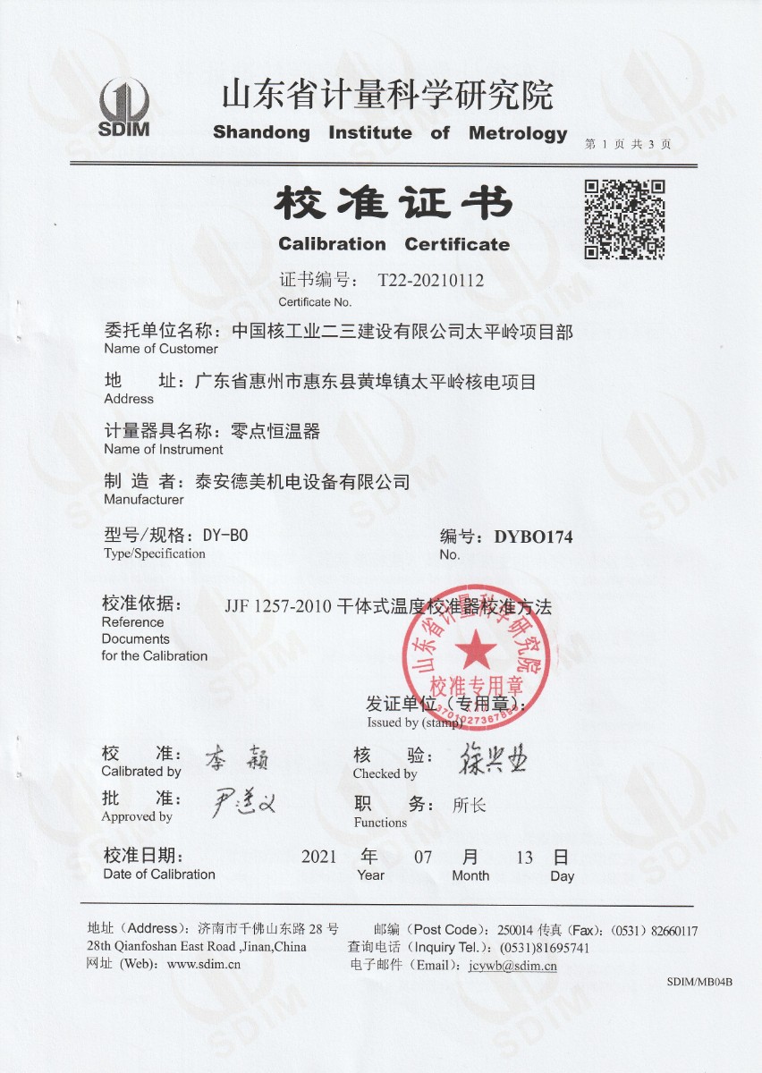| 上一條:中國核工業(yè)二三建設(shè)有限公司太平嶺項(xiàng)目部-標(biāo)準(zhǔn)鉑銠10-鉑熱電偶 | 下一條:廉金屬熱電偶檢定爐-校準(zhǔn)證書 |