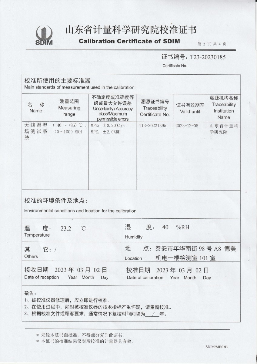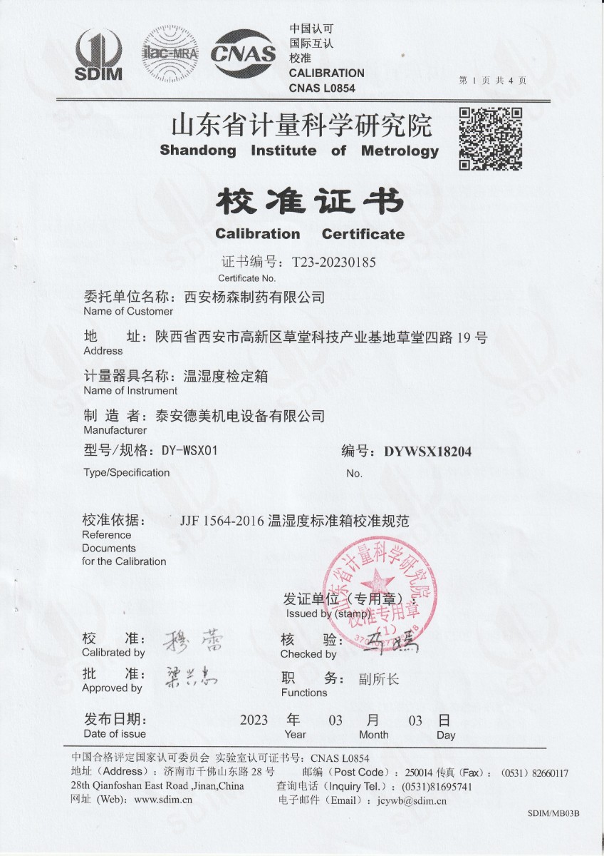 西安楊森制藥有限公司 溫濕度檢定箱 校準證書 2023-3-13 本文被閱讀 13039 次