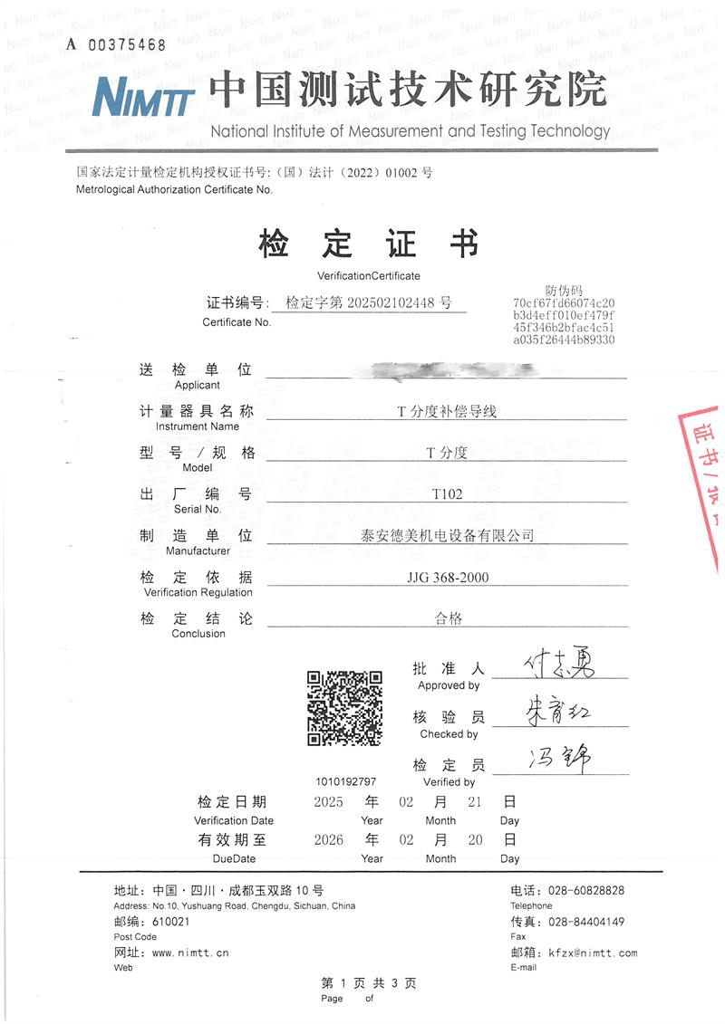 T分度補償導(dǎo)線檢定證書 2025-2-25 本文被閱讀 5617 次