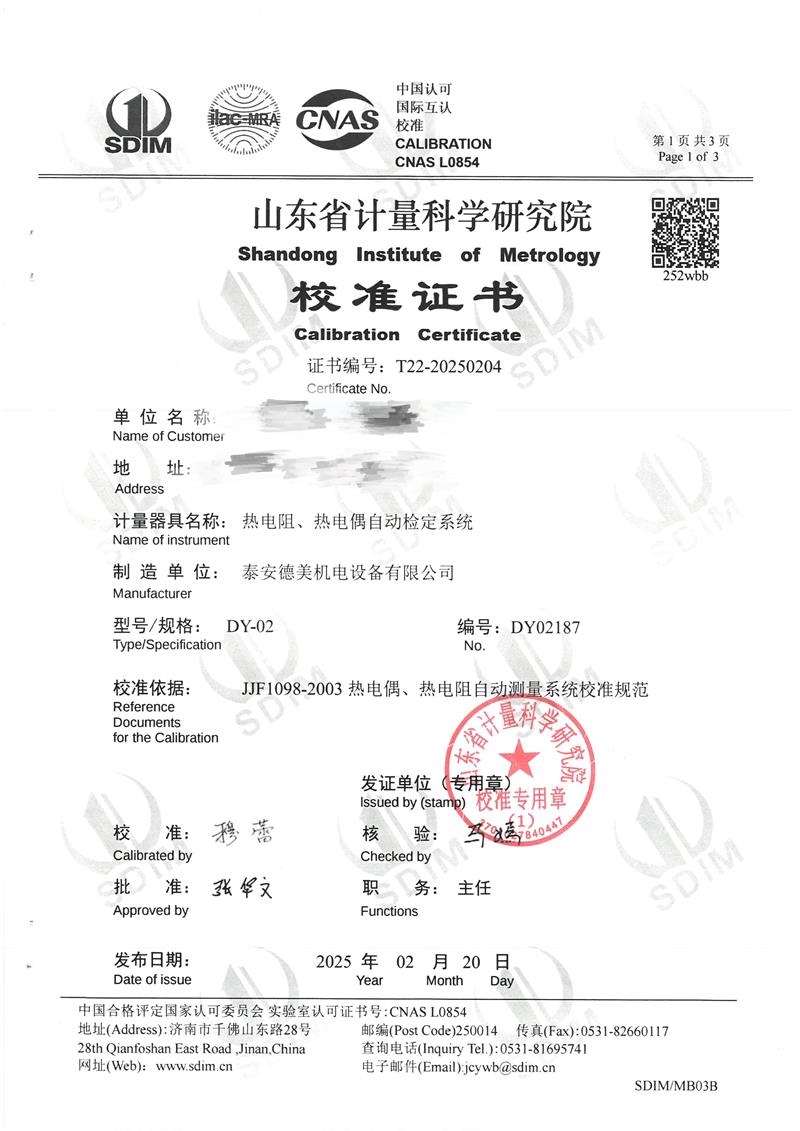 熱電阻、熱電偶自動檢定系統(tǒng)校準(zhǔn)證書 2025-2-26 本文被閱讀 5319 次
