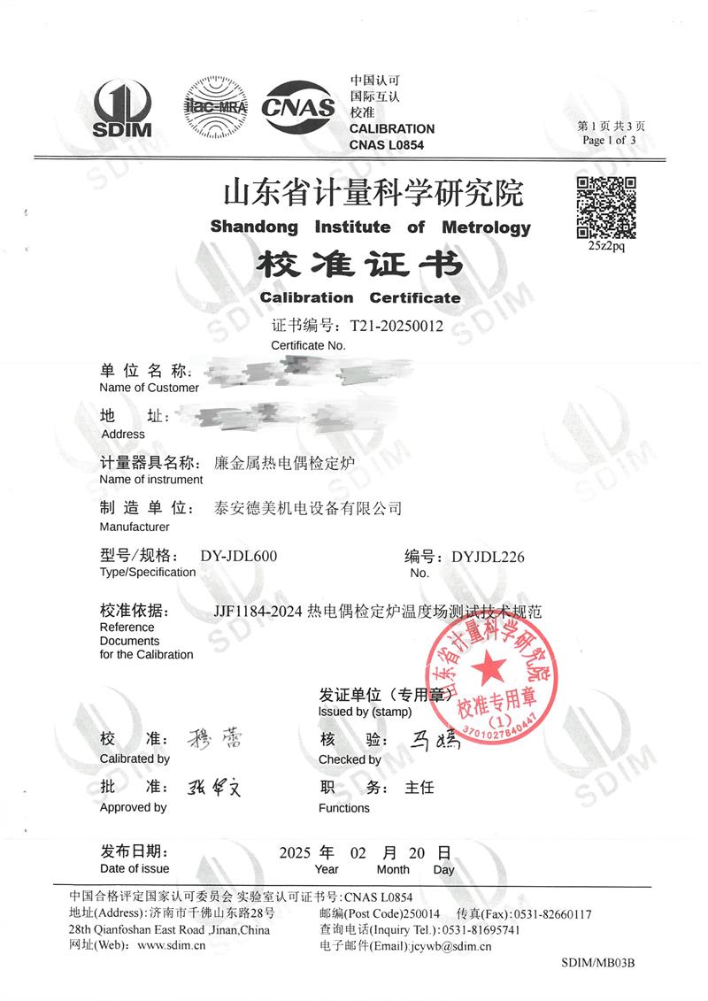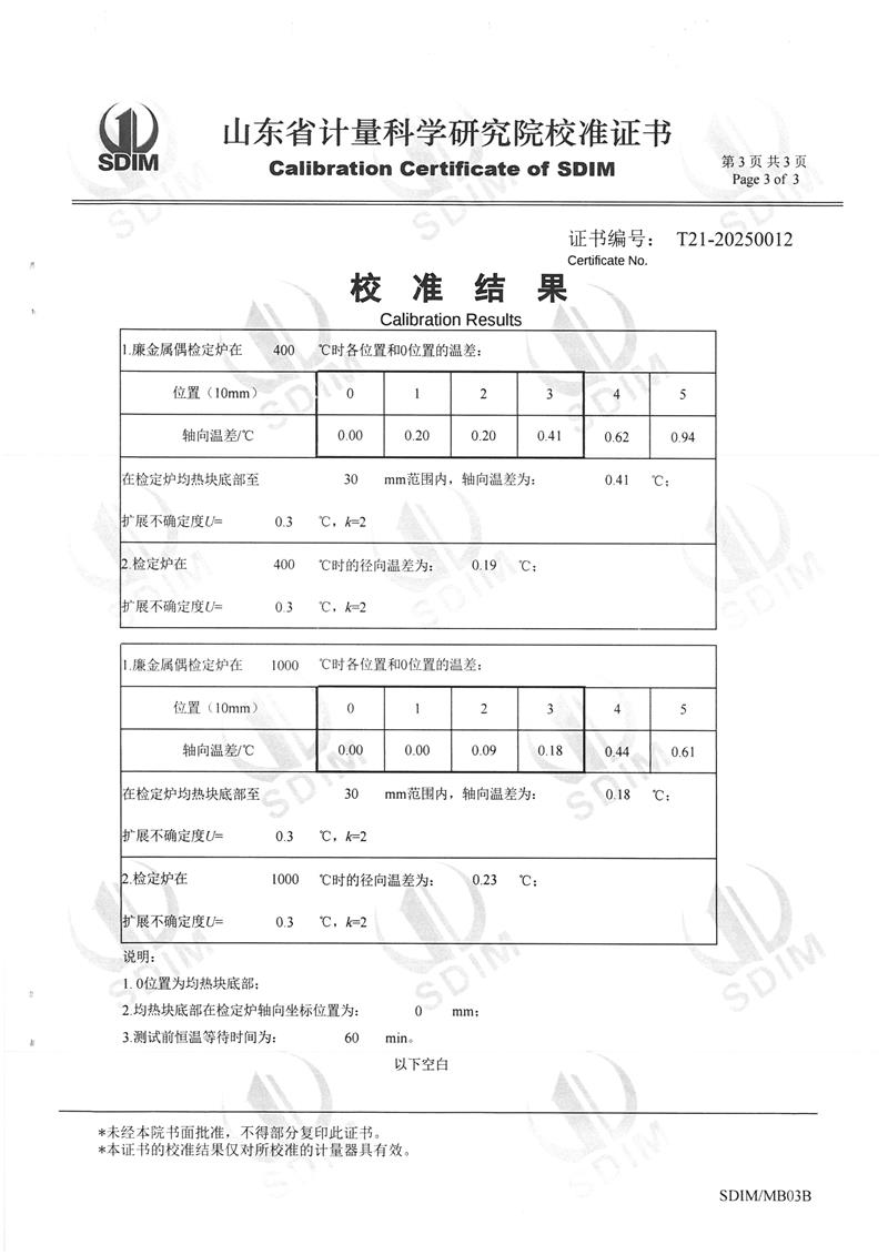 廉金屬熱電偶檢定爐(300~1200℃)校準證書 2025-2-26 本文被閱讀 5064 次