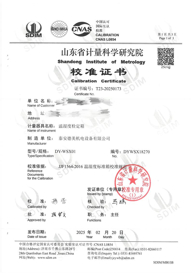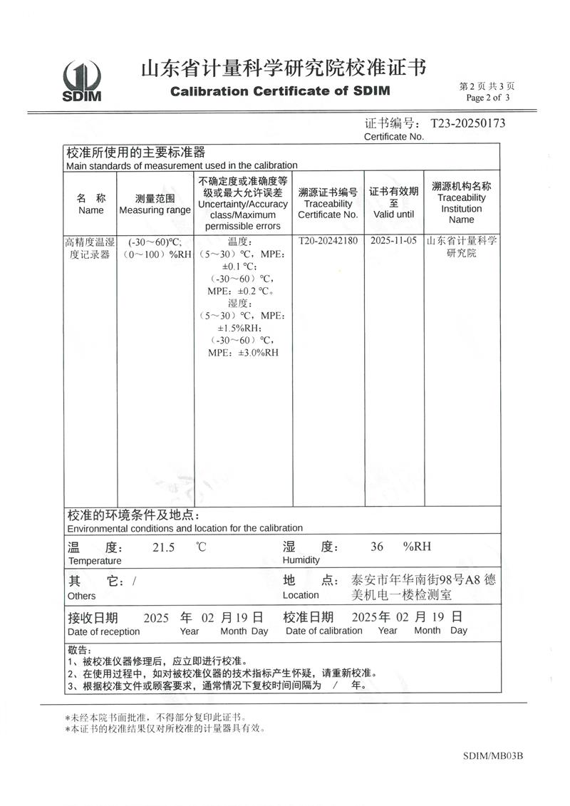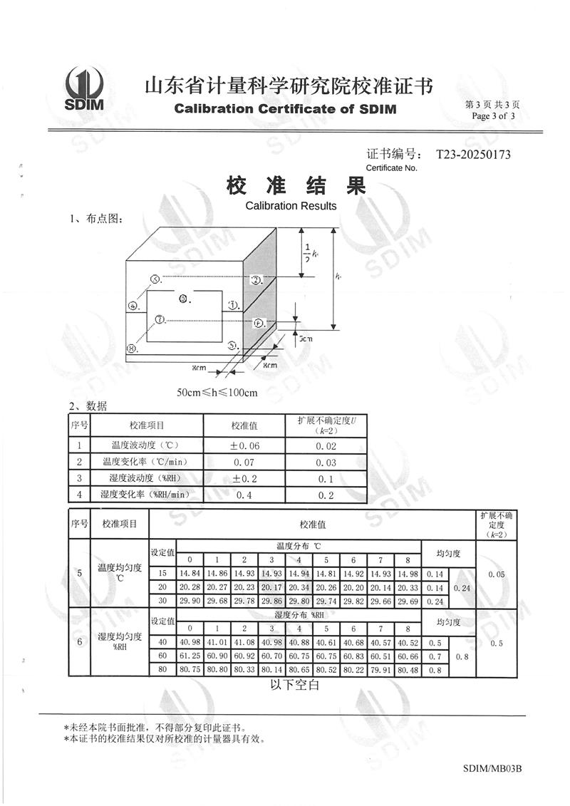溫濕度檢定箱(-5~65℃)校準證書 2025-2-26 本文被閱讀 5450 次