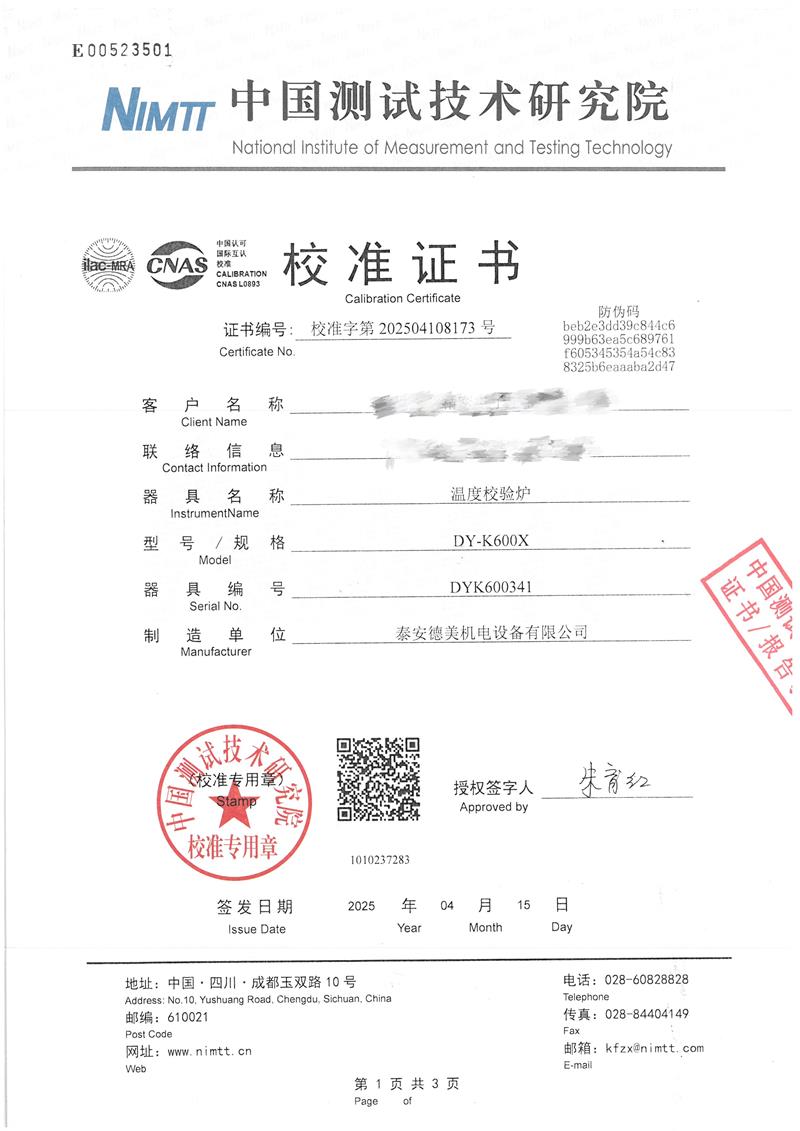 | 上一條:手提式恒溫油槽(70-300℃)校準(zhǔn)證書 | 下一條:溫度數(shù)據(jù)采集儀校準(zhǔn)證書 |