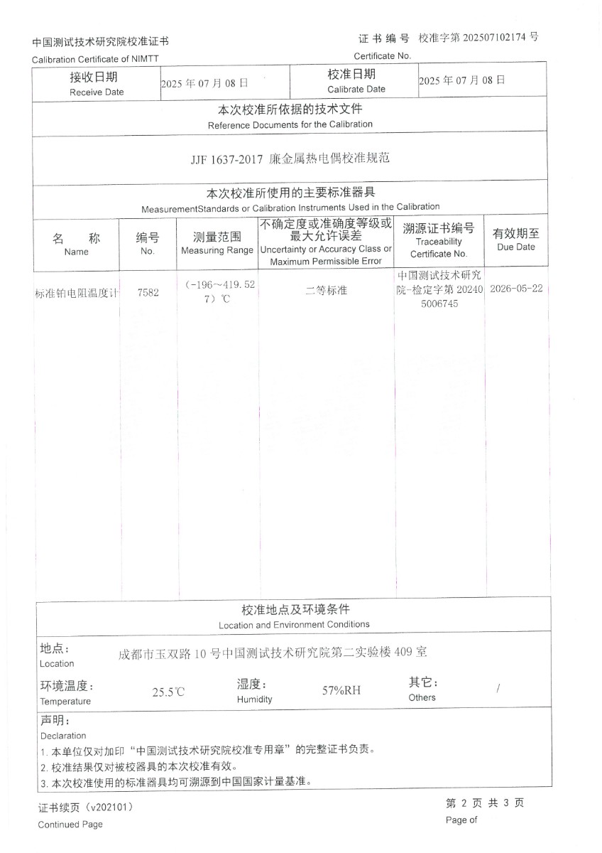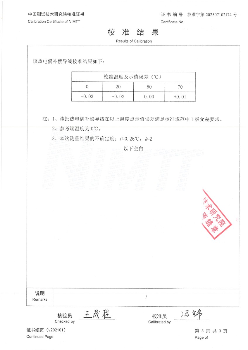熱電偶補償導線(N分度)校準證書 2025-7-10 本文被閱讀 3163 次