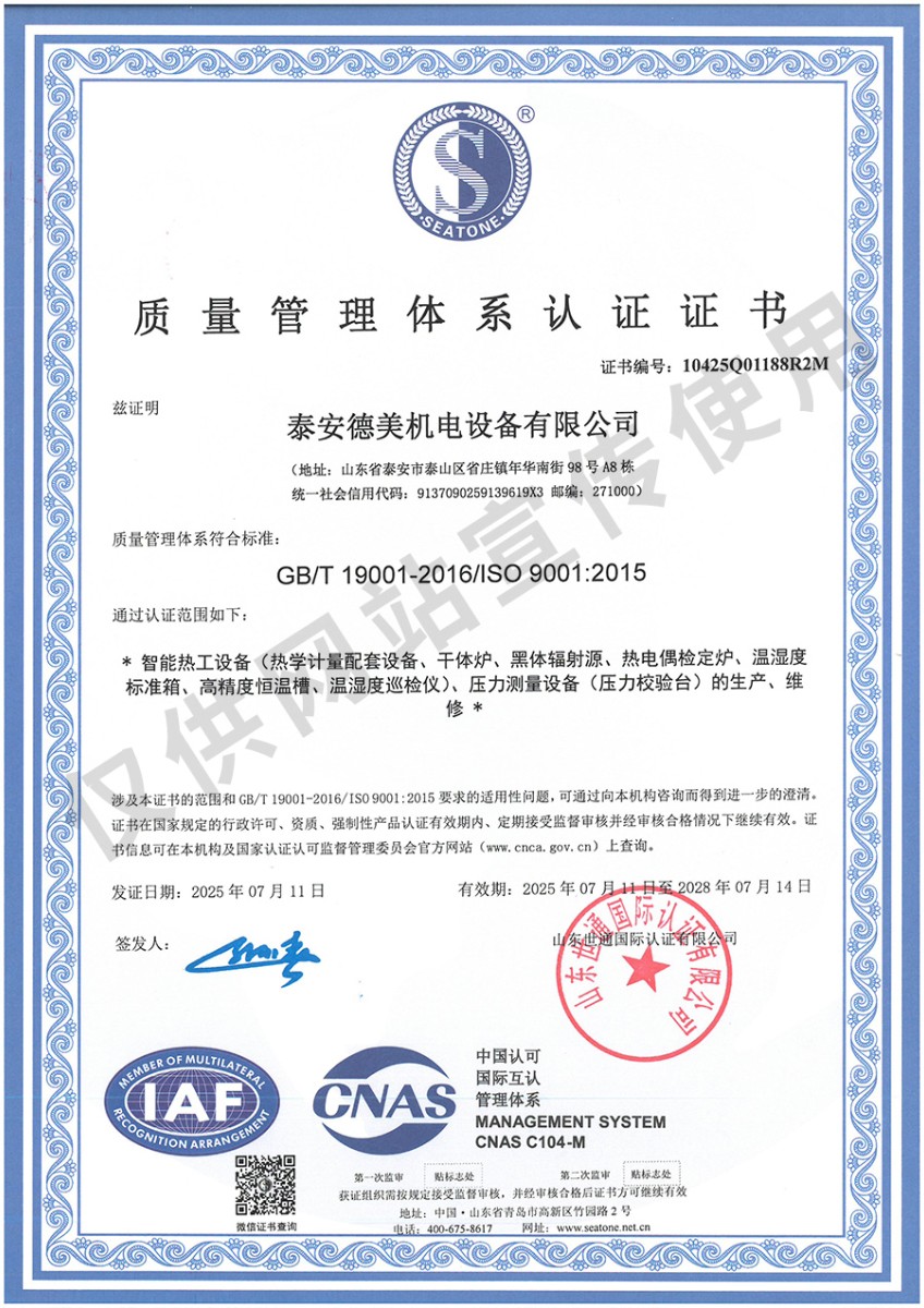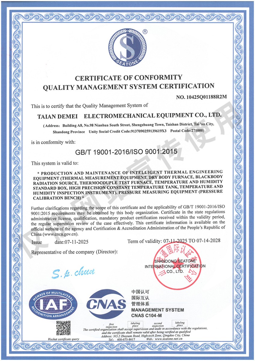 | 上一條:熱電偶檢定爐(300-1200℃)校準(zhǔn)證書 | 下一條:高精度制冷恒溫槽(-80~100℃)校準(zhǔn)證書 |