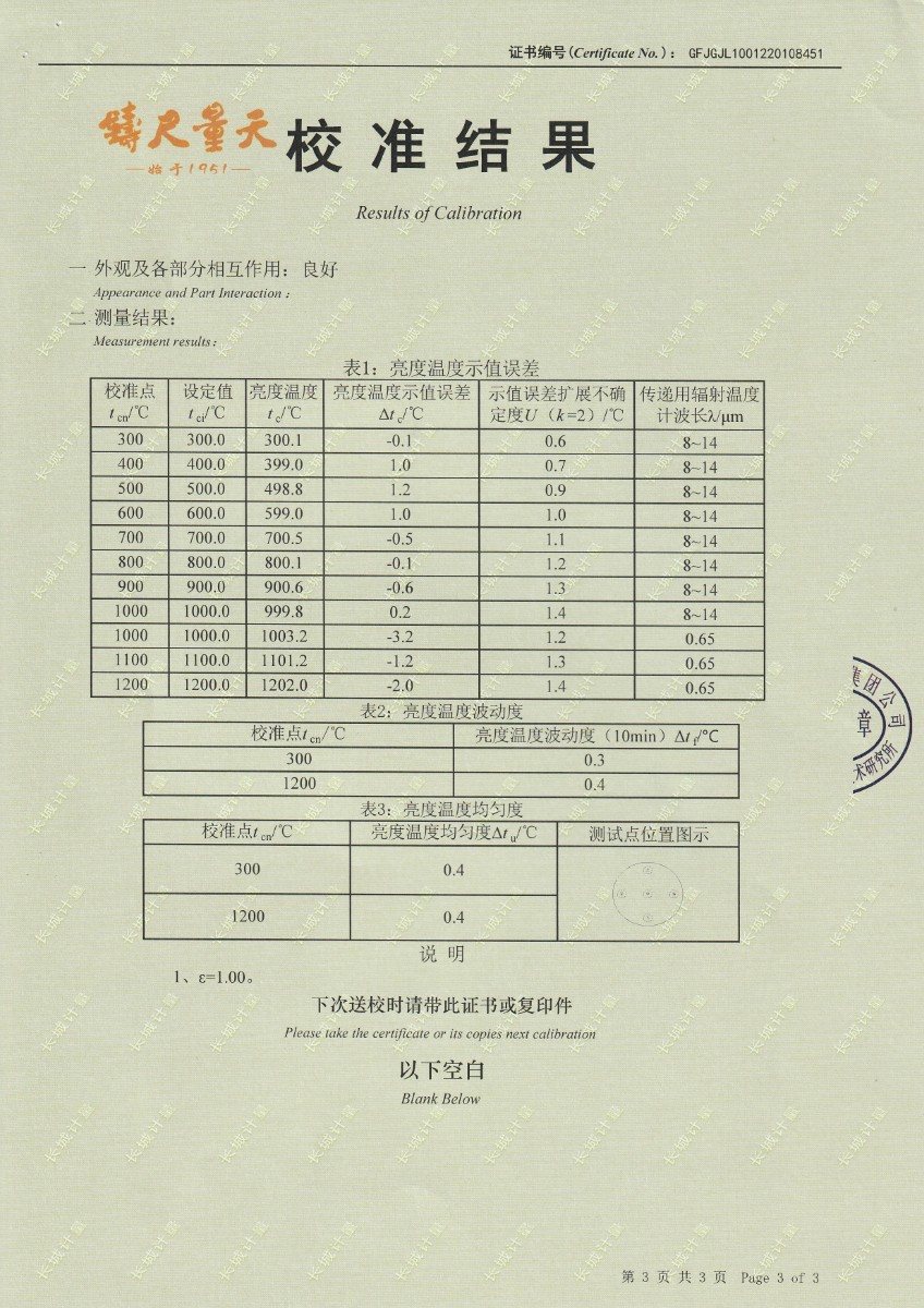 | 上一條:青島加侖檢測(cè)技術(shù)服務(wù)有限公司-黑體輻射源 | 下一條:高精度制冷恒溫槽(-80~100℃)校準(zhǔn)證書(shū) |