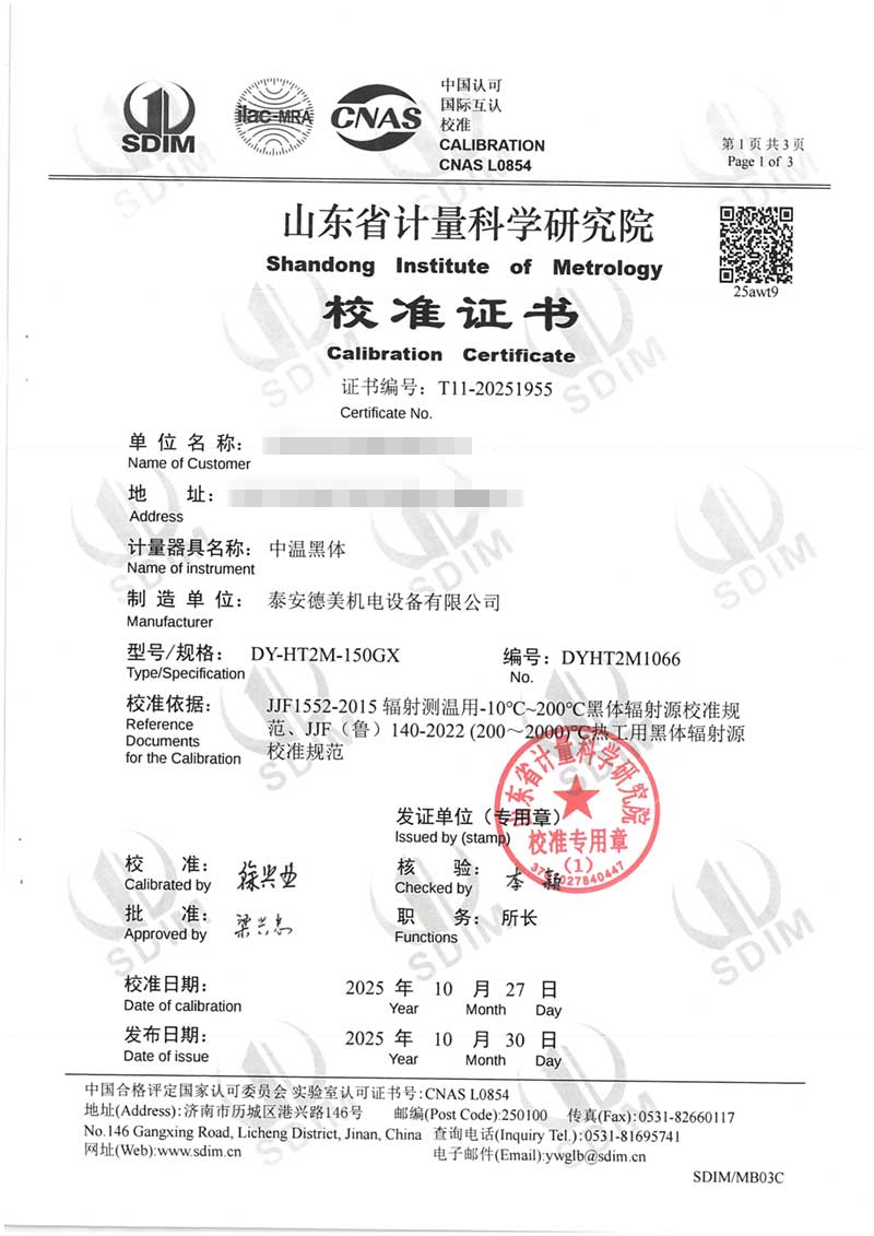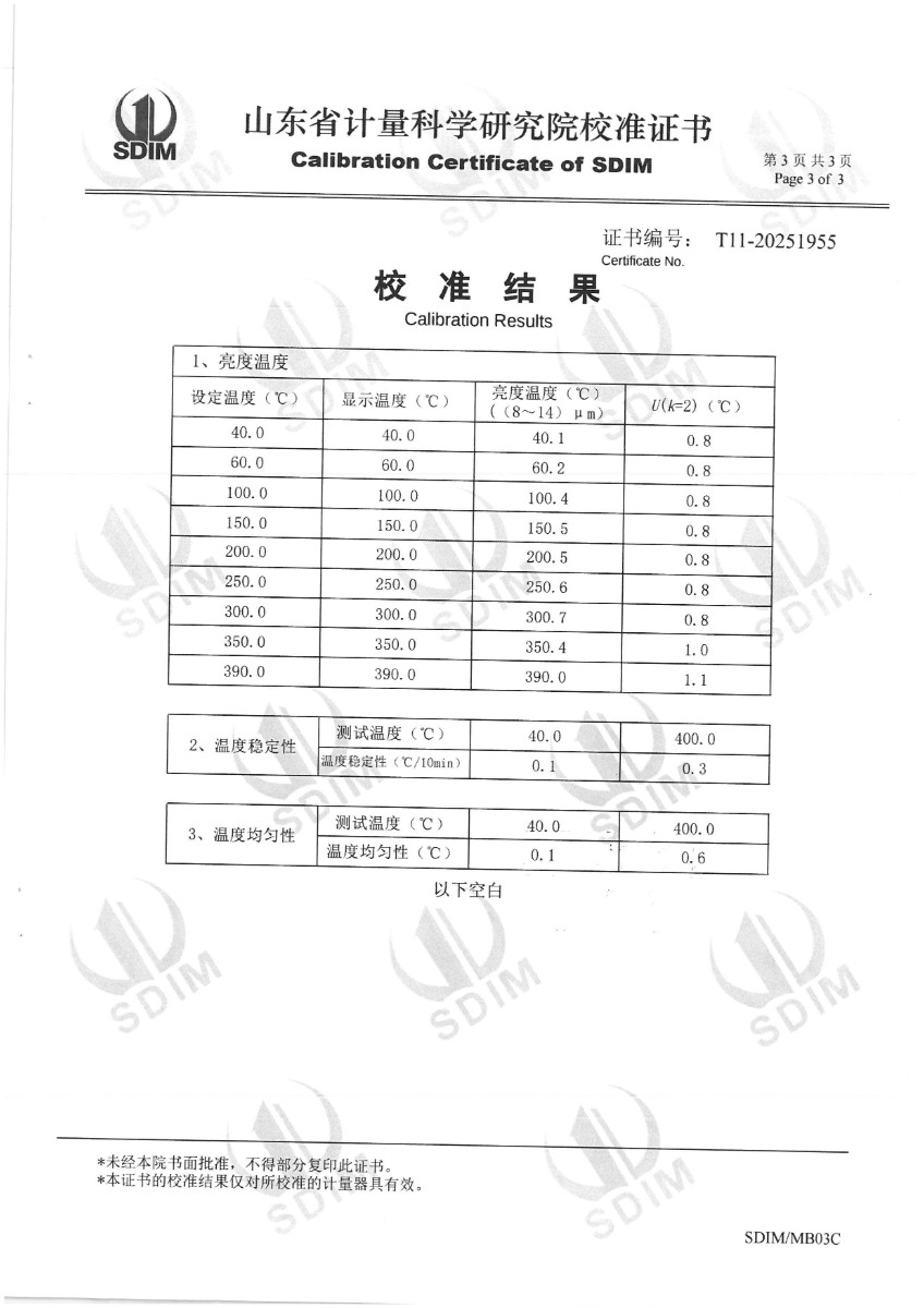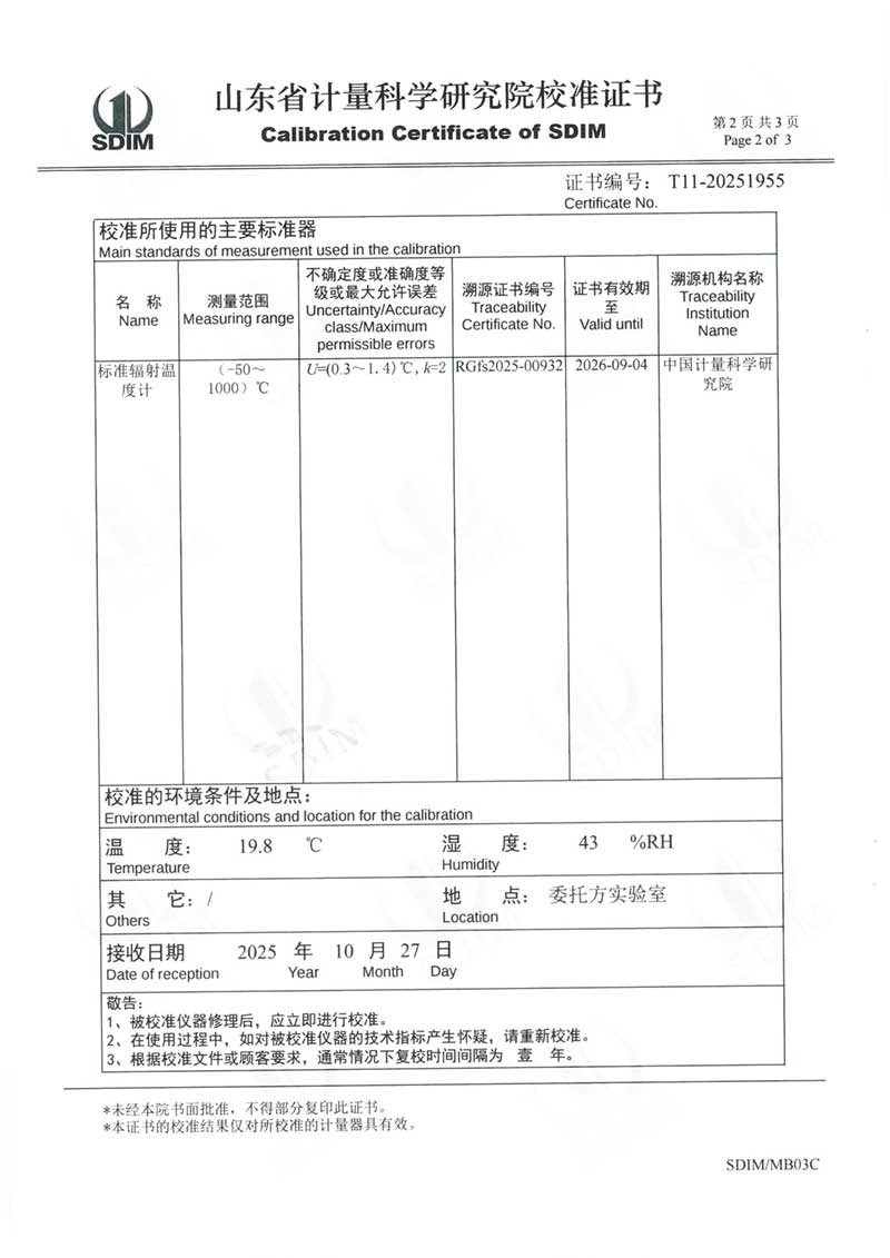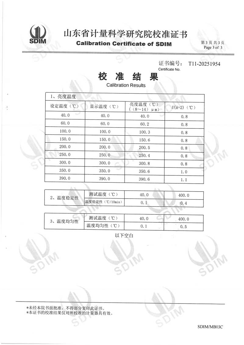 中溫黑體(室溫+5~400℃)校準證書 2025-11-5 本文被閱讀 1101 次