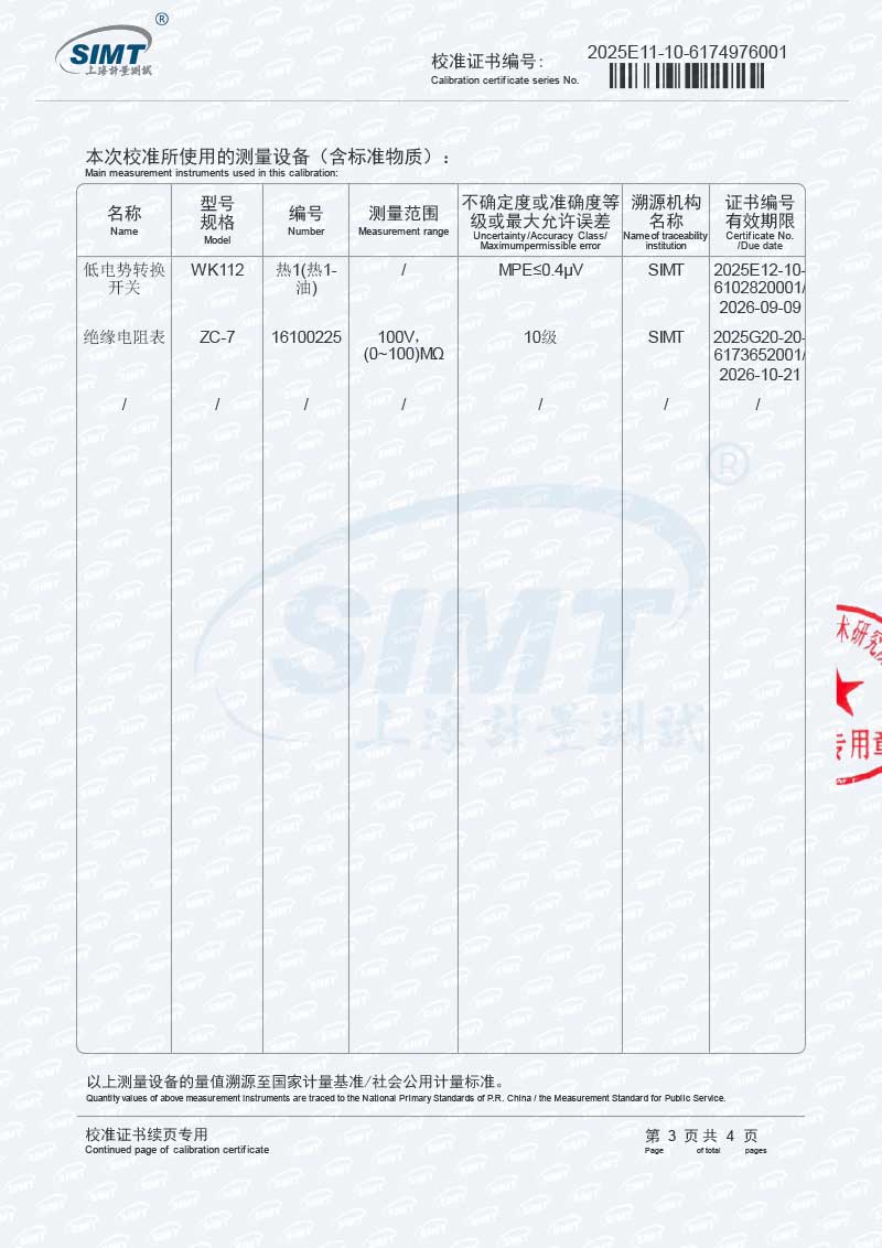 | 上一條:額溫計(jì)黑體空腔校準(zhǔn)證書 | 下一條:高精度制冷恒溫槽(-80~100℃)校準(zhǔn)證書 |