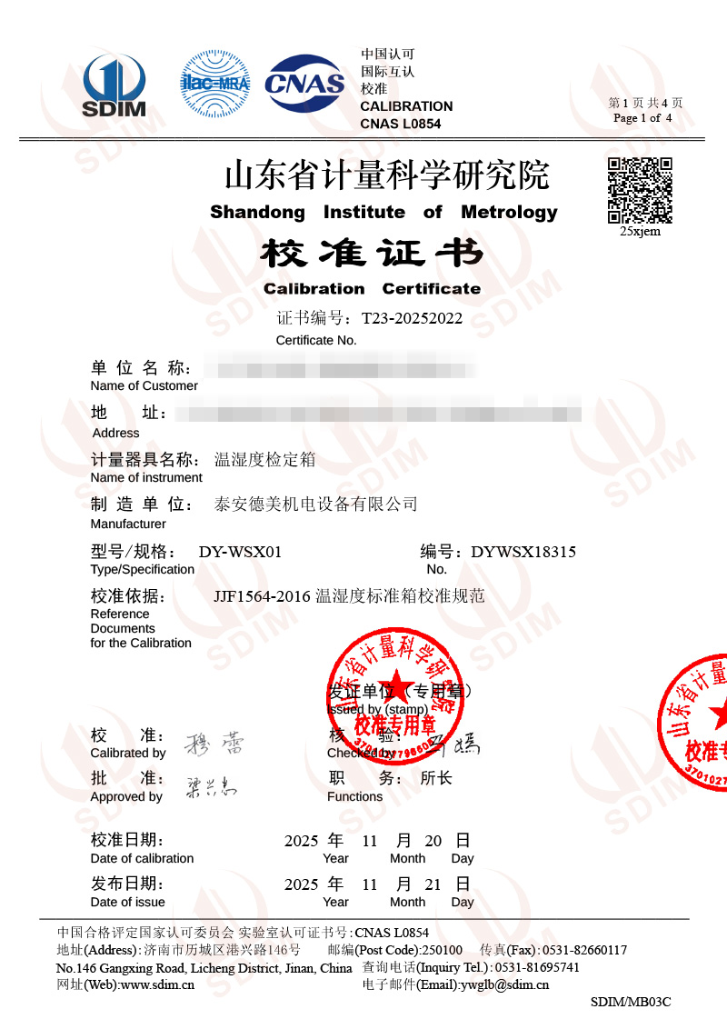 溫濕度檢定箱校準證書 2025-11-25 本文被閱讀 1305 次