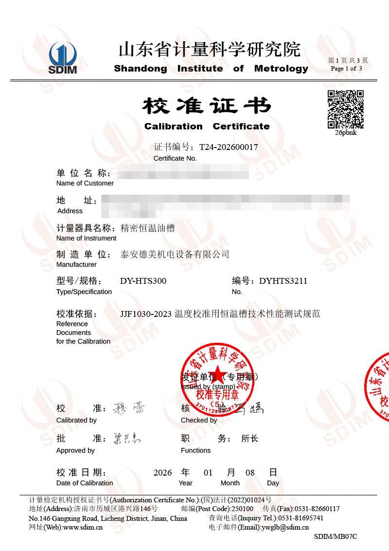 恒溫油槽校準(zhǔn)證書 2026-1-13 本文被閱讀 1394 次
