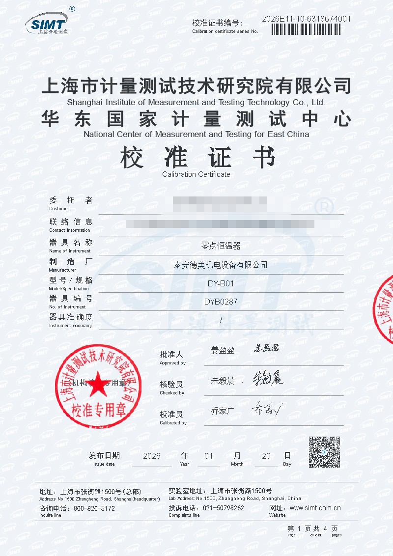 零點恒溫器-校準(zhǔn)證書 2026-1-26 本文被閱讀 886 次