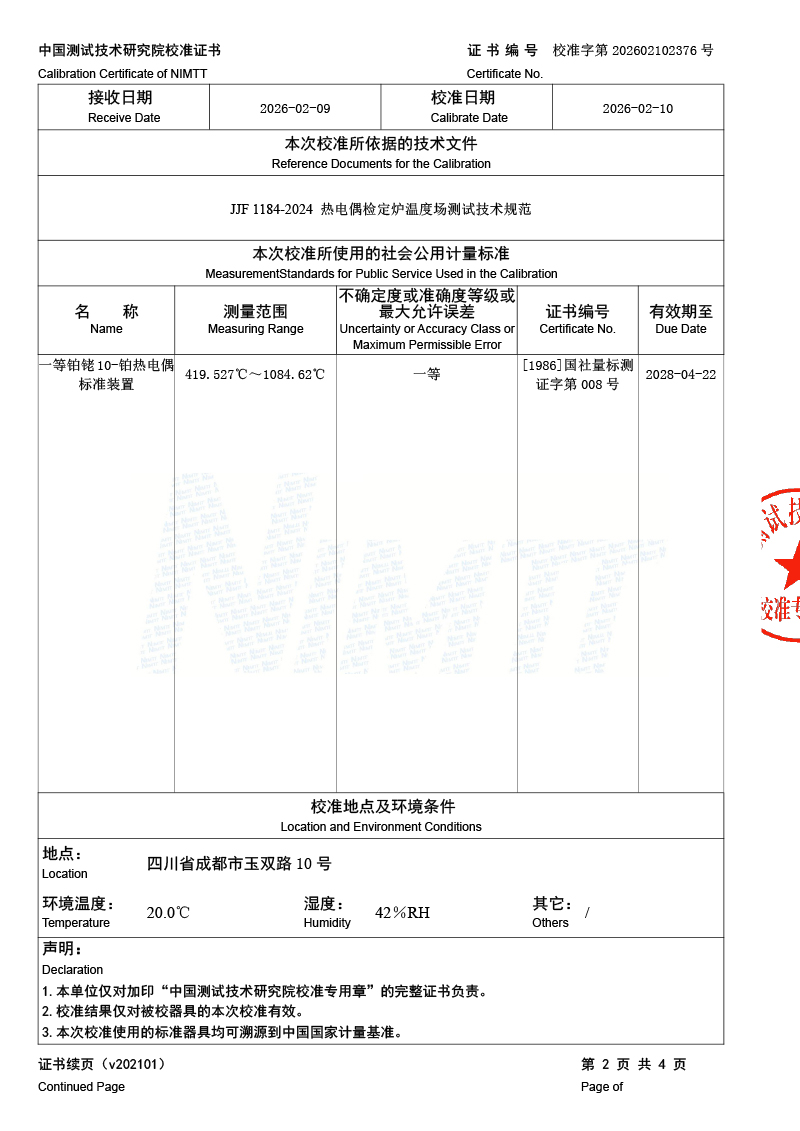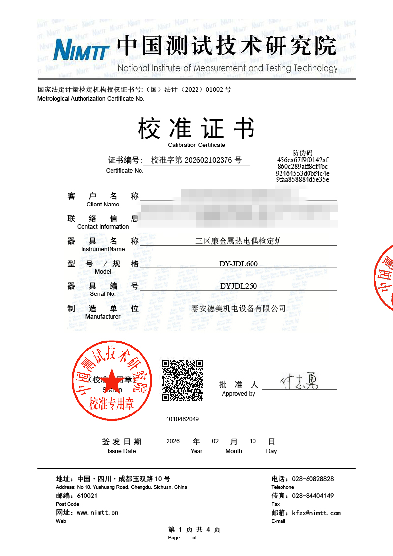 三區(qū)廉金屬熱電偶檢定爐-校準證書 2026-2-11 本文被閱讀 353 次
