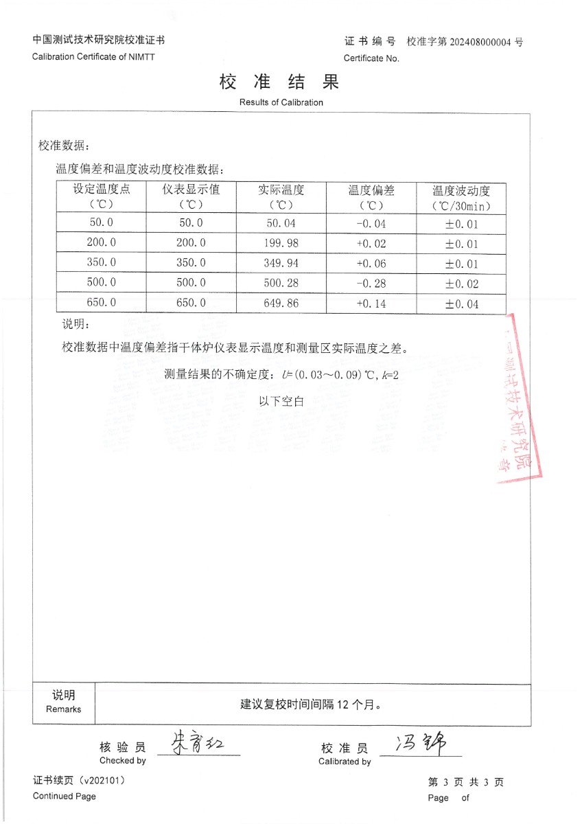 | 上一條:干體爐300(室溫+5℃~650℃)校準(zhǔn)證書 | 下一條:溫度數(shù)據(jù)采集儀校準(zhǔn)證書 |