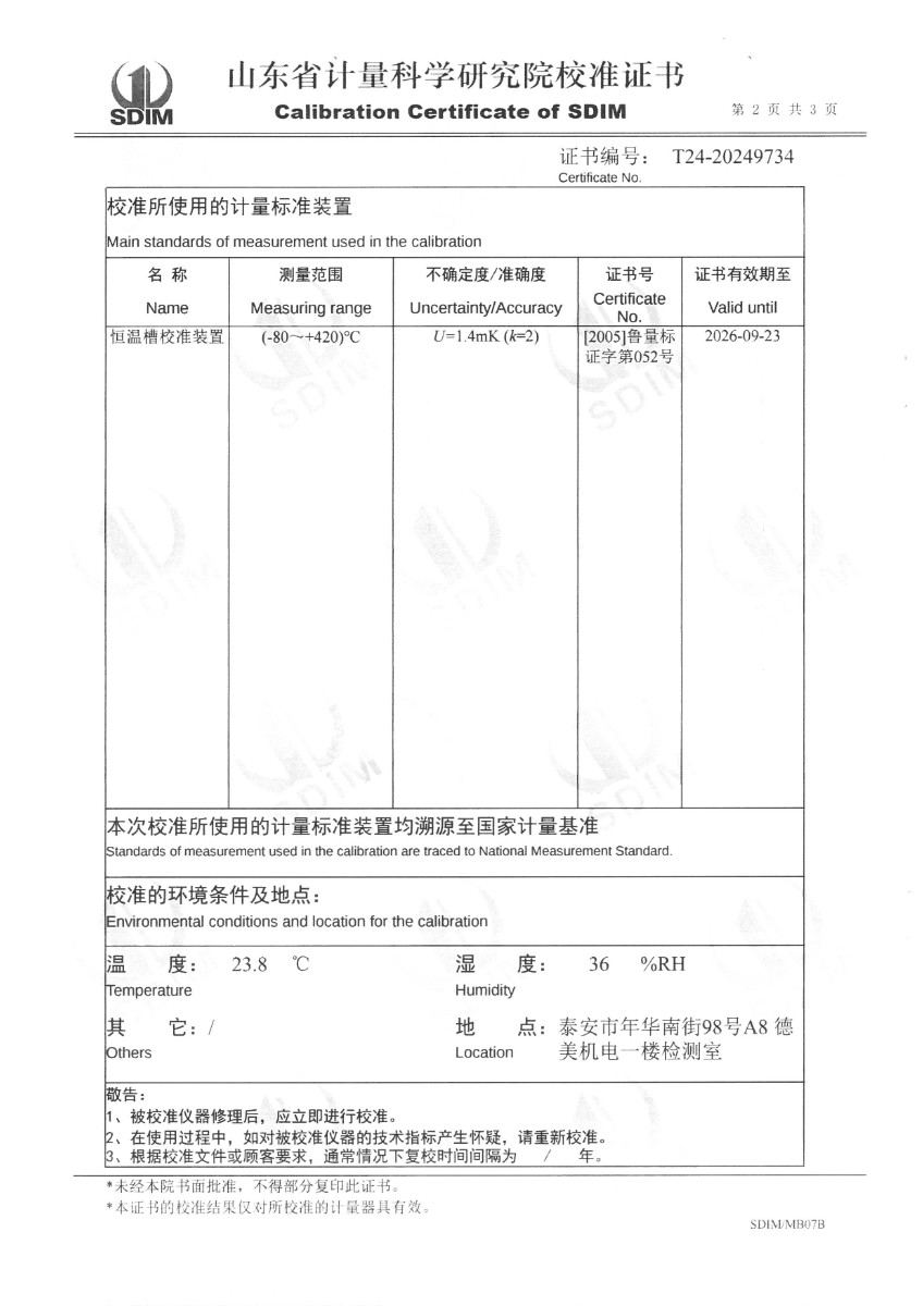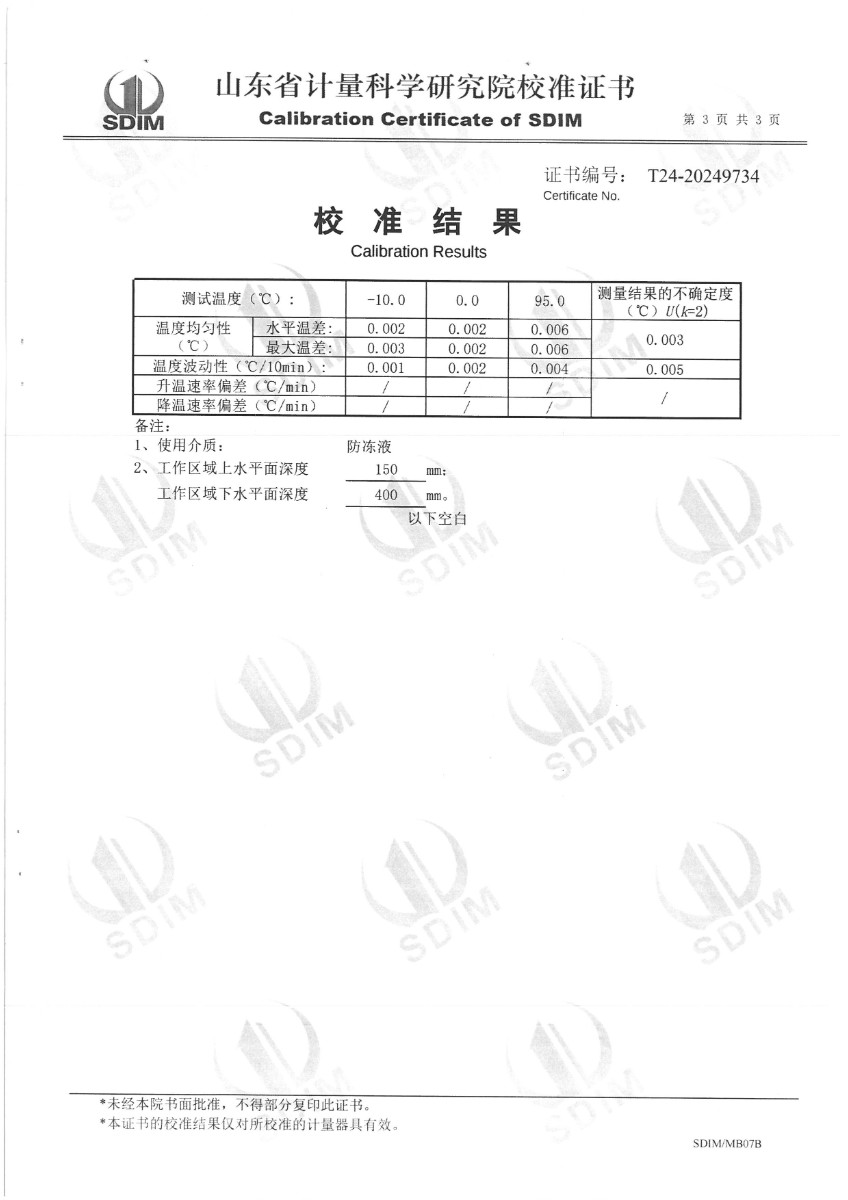| 上一條:高精度恒溫油槽(70~300)℃校準(zhǔn)證書(shū) | 下一條:高精度制冷恒溫槽(-80~100℃)校準(zhǔn)證書(shū) |