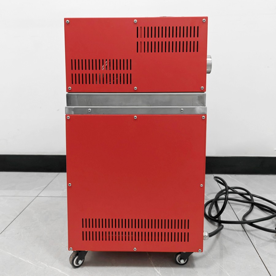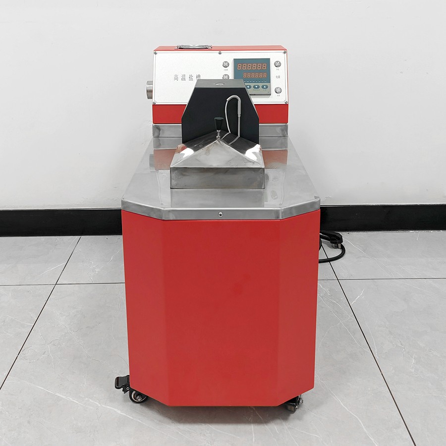 產(chǎn)品采用先進(jìn)的自動(dòng)控制系統(tǒng),界面友好,操作方便,控制精度高。主要是由加熱系統(tǒng)、控溫系統(tǒng)、攪拌系統(tǒng)所組成。槽體分混合區(qū)與工作區(qū)。在混合區(qū)內(nèi)由加熱器產(chǎn)生的熱量使槽內(nèi)固態(tài)鹽(介質(zhì))升溫熔化成鹽液,當(dāng)鹽液溫度上升到接近設(shè)定溫度時(shí),控溫系統(tǒng)根據(jù)感溫器測得的溫度來控制加熱器工作,再經(jīng)過攪拌系統(tǒng)的強(qiáng)烈攪拌充分均勻后的鹽液(介質(zhì))送入少受外界干擾的工作區(qū)。從而得到一個(gè)溫度穩(wěn)定溫場均勻的液體空間。