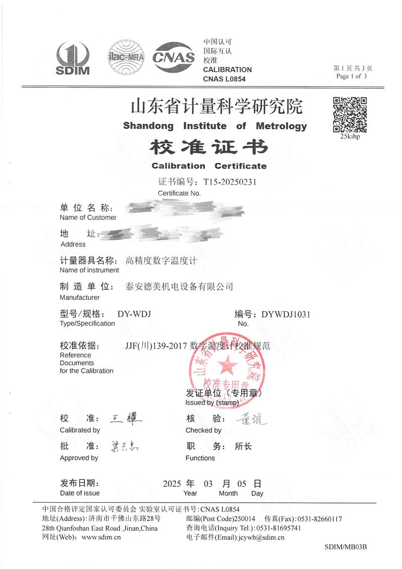 高精度數(shù)字溫度計校準(zhǔn)證書 2025-3-8 本文被閱讀 4169 次