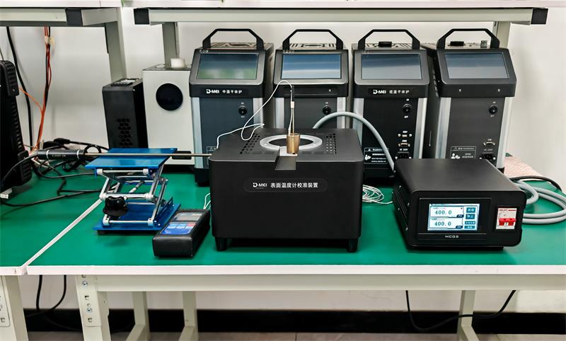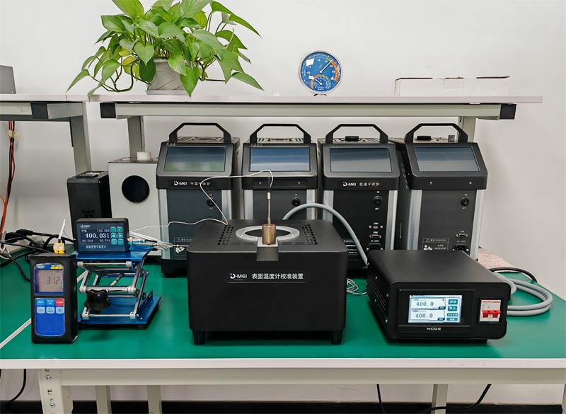 表面?zhèn)鞲衅魍ǔky以校準(zhǔn),這是因?yàn)楹茈y找到一個平坦,均勻的表面溫度源。表面溫度校準(zhǔn)系統(tǒng)利用特殊合金材料作為表面,光潔度高,可以保證被校準(zhǔn)的傳感器與表面溫度校準(zhǔn)器接觸良好,從而降低校準(zhǔn)不確定度。采用特殊的加熱材質(zhì)和恒溫結(jié)構(gòu),使得表面溫度更加均勻。