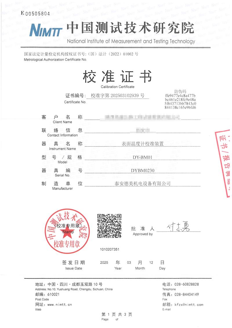 | 上一條:DY-BM02型表面溫度計(jì)校驗(yàn)爐 | 下一條:高精度制冷恒溫槽(-80~100℃)校準(zhǔn)證書 |
