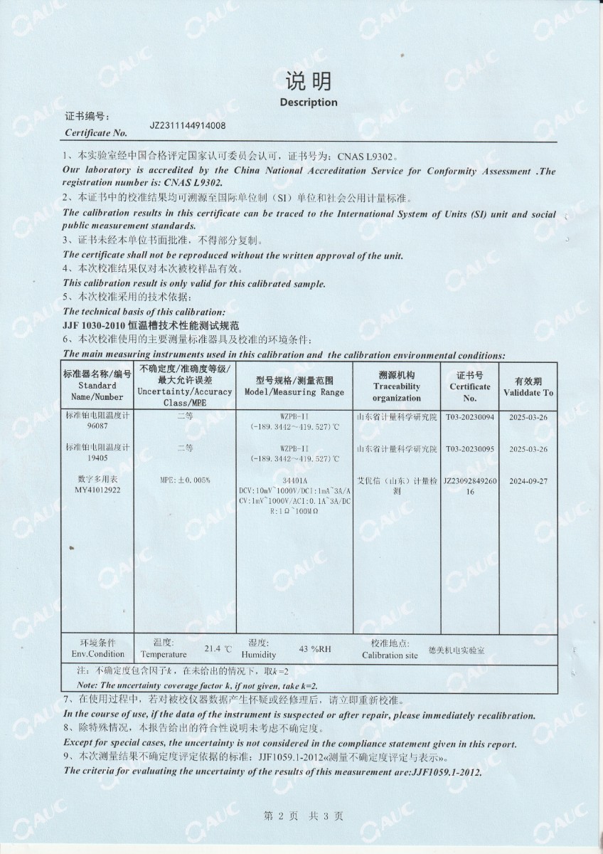 上一條:高精度數(shù)字溫度計下一條:高精度制冷恒溫槽(-80~100℃)校準(zhǔn)證書