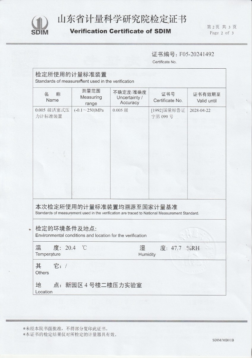 數(shù)字壓力表檢定證書(shū) 2024-4-11 本文被閱讀 7247 次