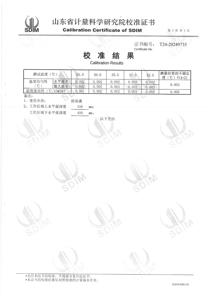 體溫計專用黑體恒溫槽(-20~100℃)校準證書 2024-9-21 本文被閱讀 6905 次