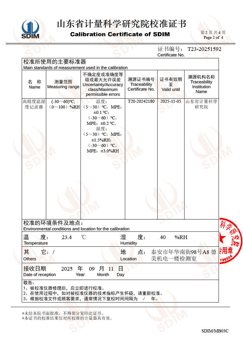 溫濕度檢定箱(-20-70℃)校準證書 2025-9-18 本文被閱讀 2641 次