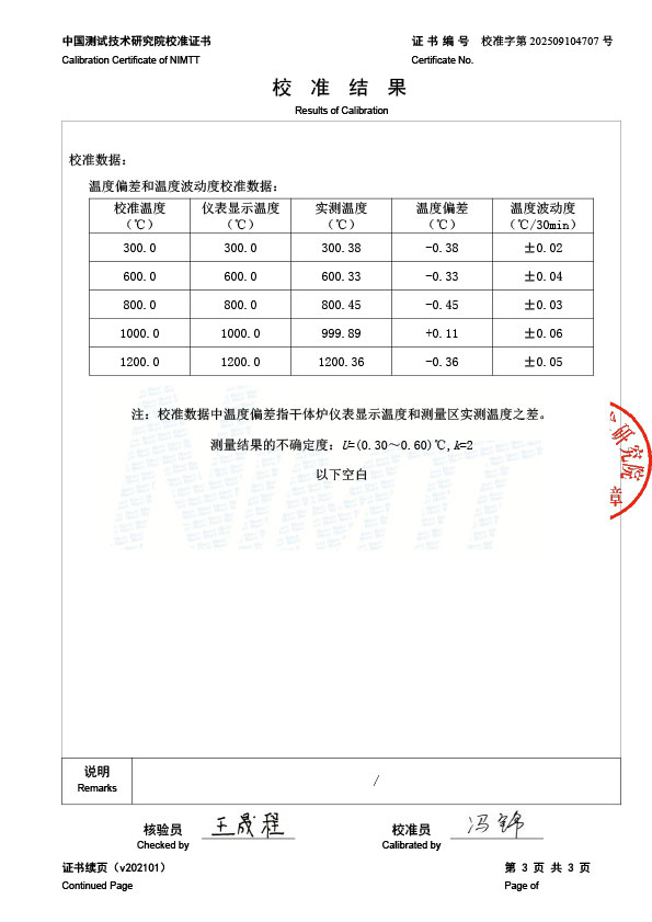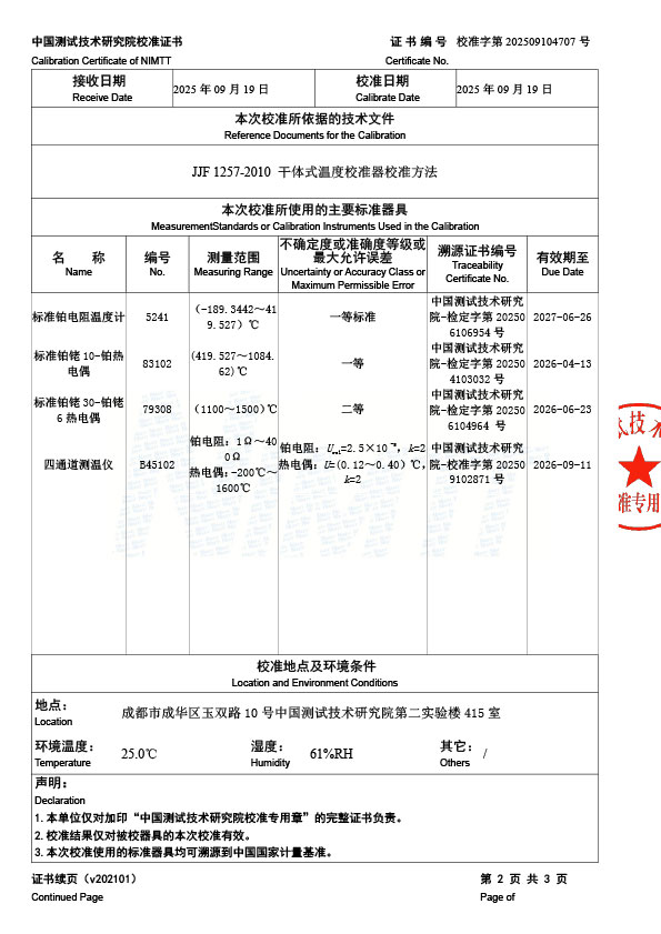 | 上一條:黑體輻射源(50-1200℃)校準(zhǔn)證書 | 下一條:溫度數(shù)據(jù)采集儀校準(zhǔn)證書 |