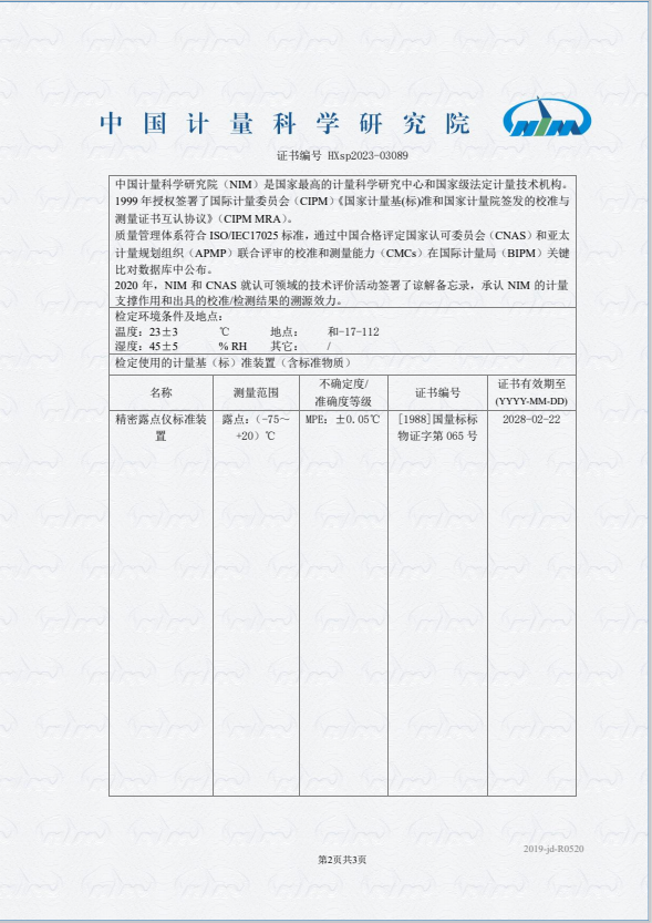 露點儀檢定證書 2023-11-27 本文被閱讀 9268 次