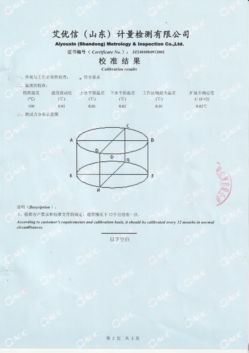 便攜式恒溫油槽校準(zhǔn)證書(shū)