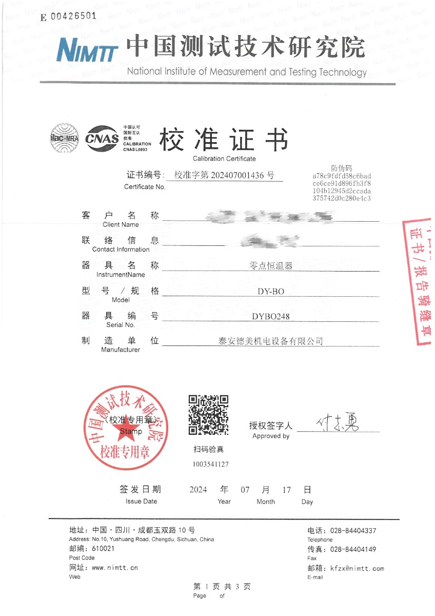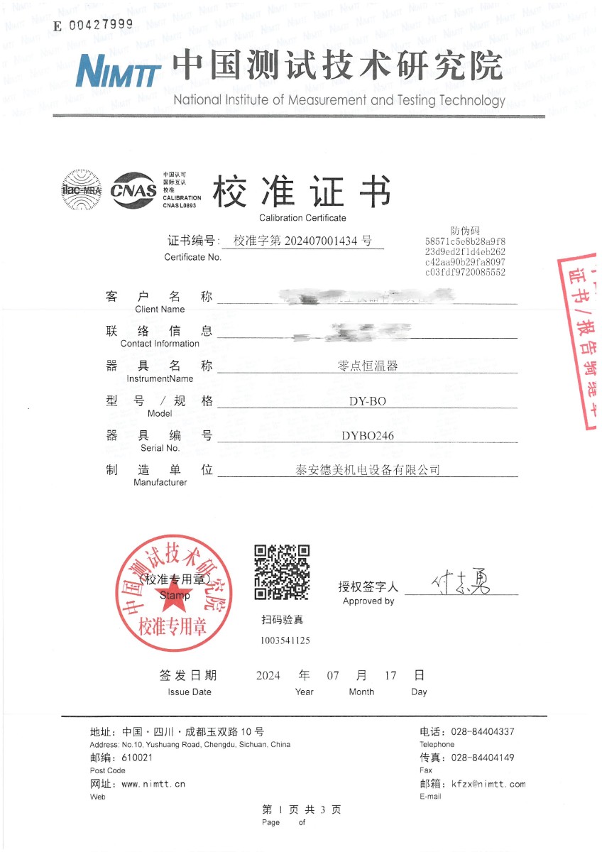 零點恒溫器校準(zhǔn)證書 2024-7-19 本文被閱讀 7144 次