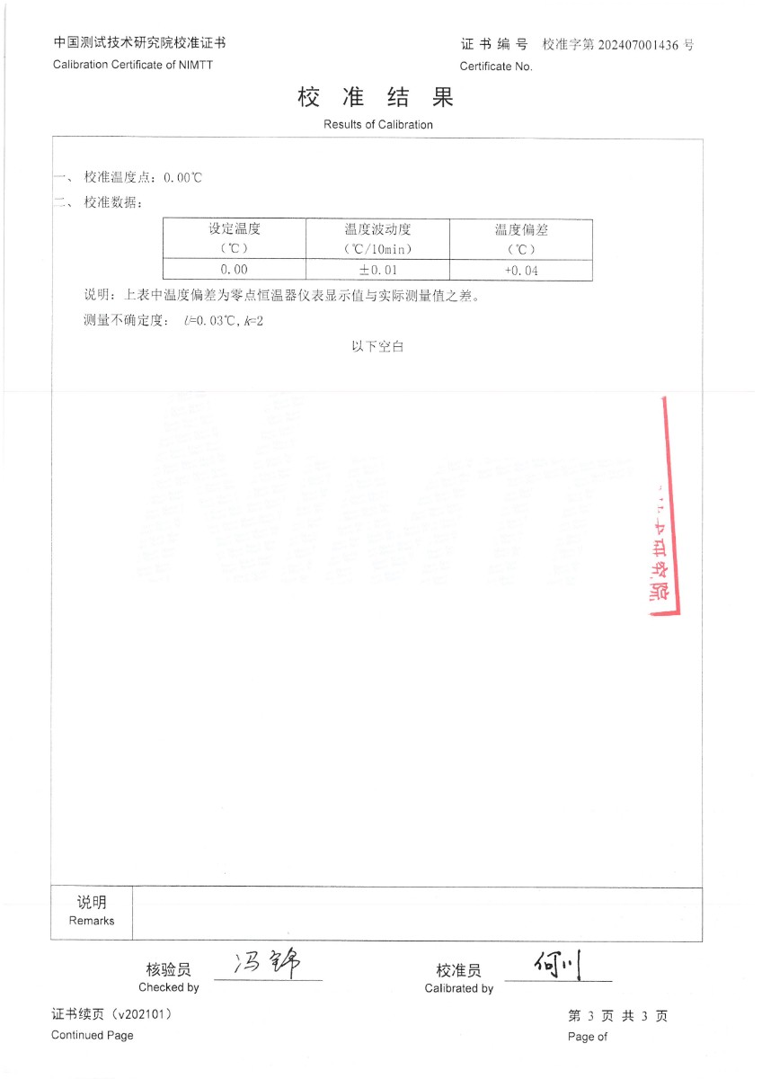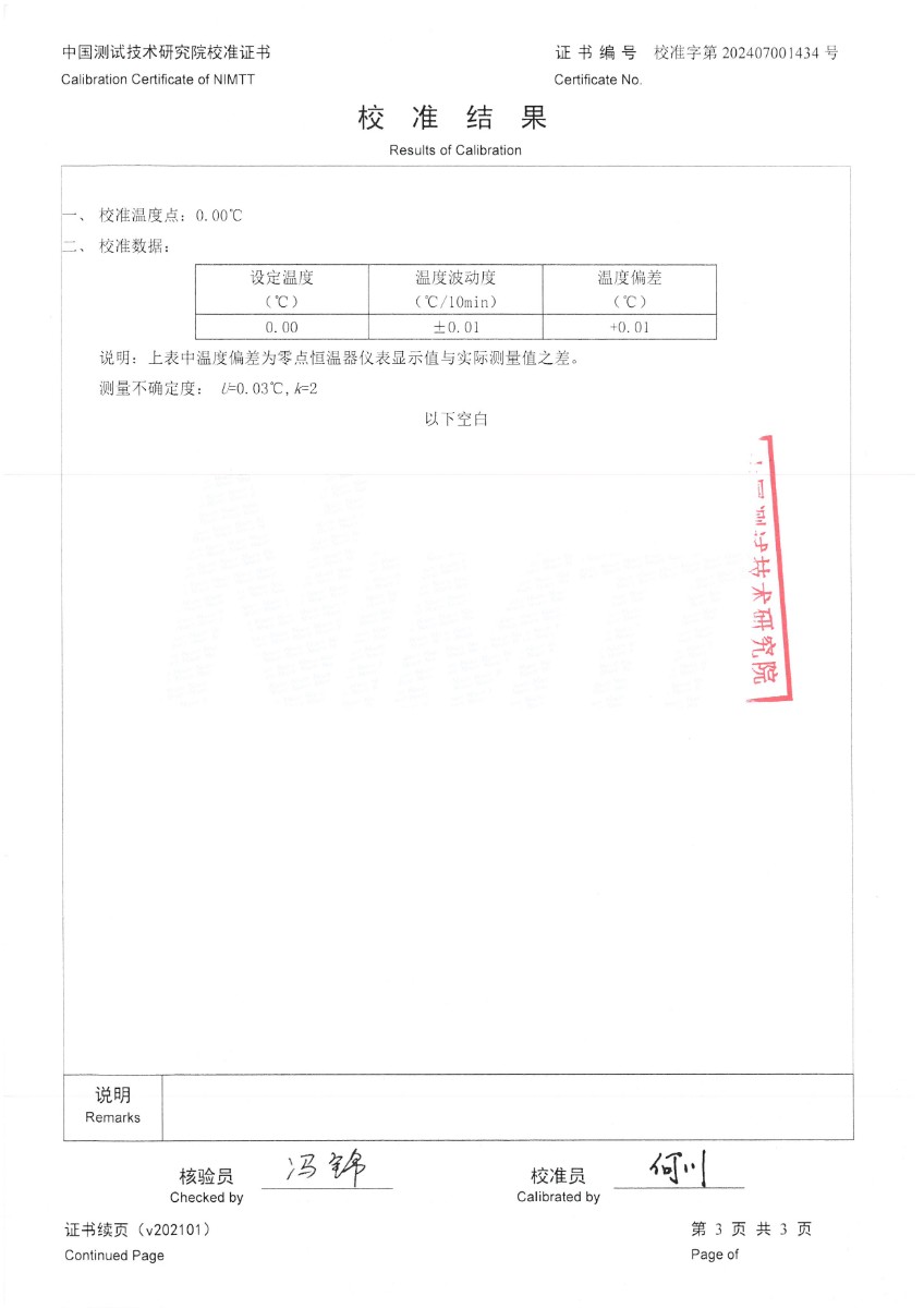 零點恒溫器校準(zhǔn)證書