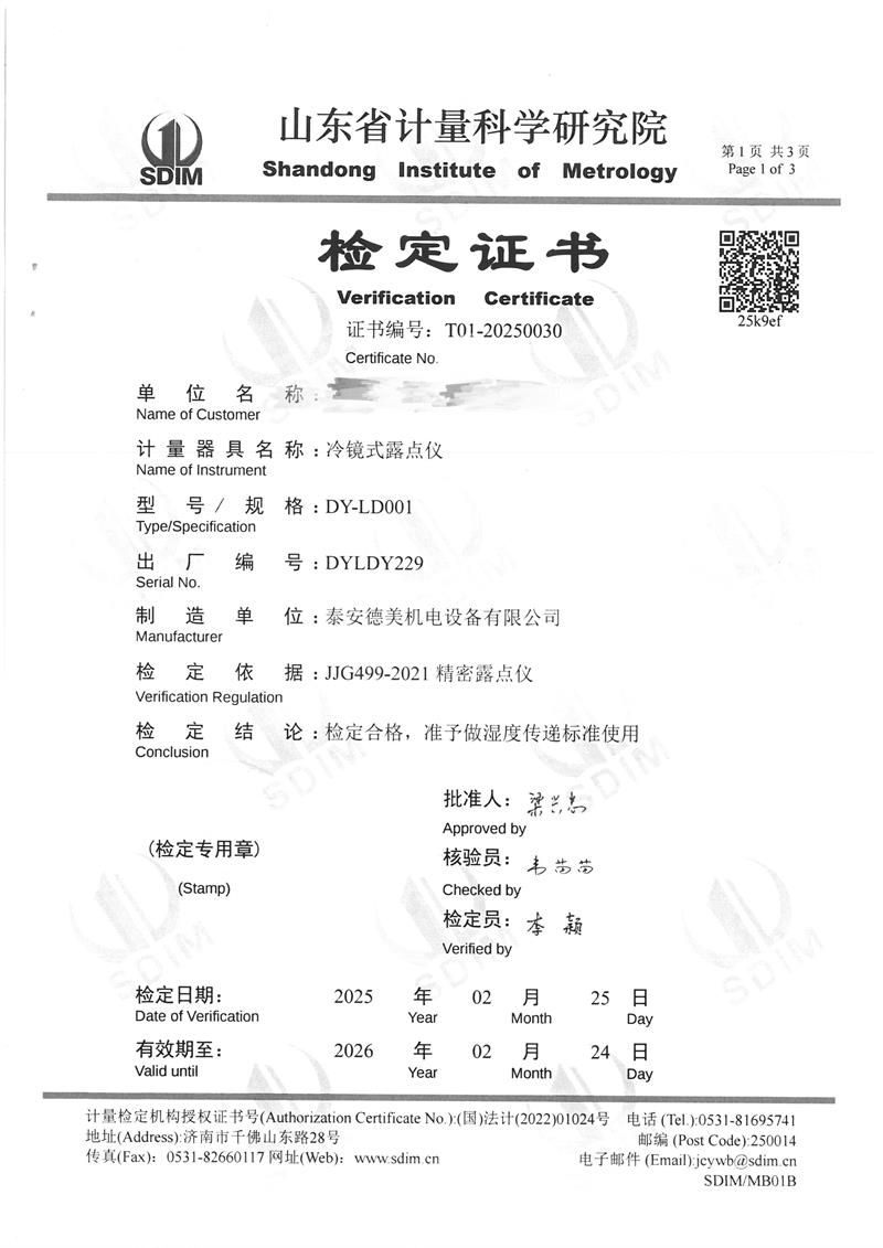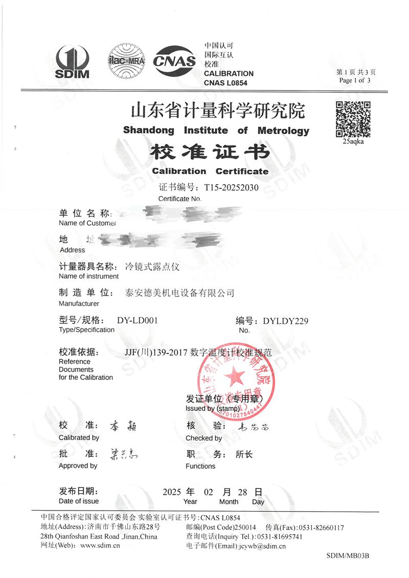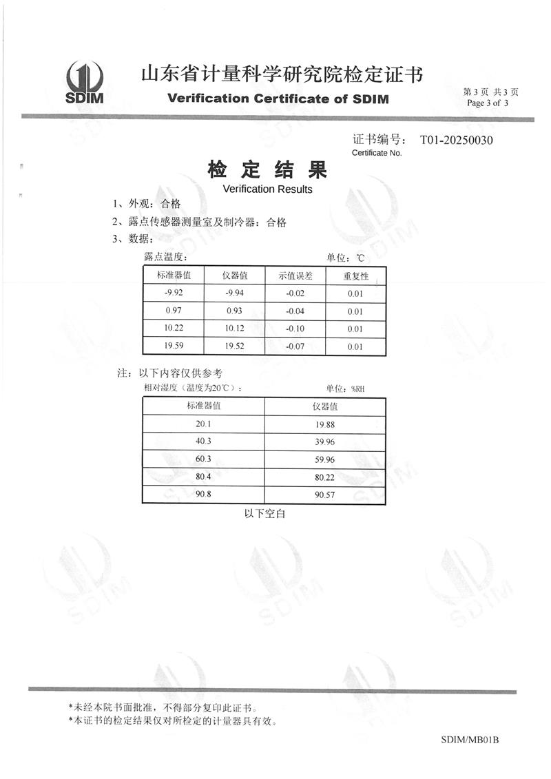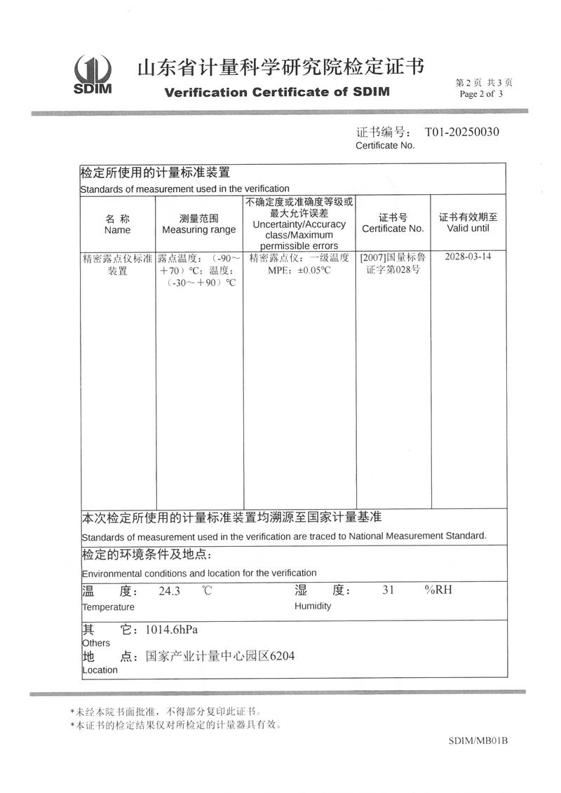 露點儀檢定、校準證書 2025-3-8 本文被閱讀 5008 次