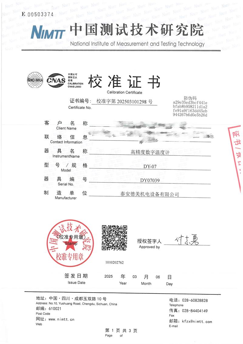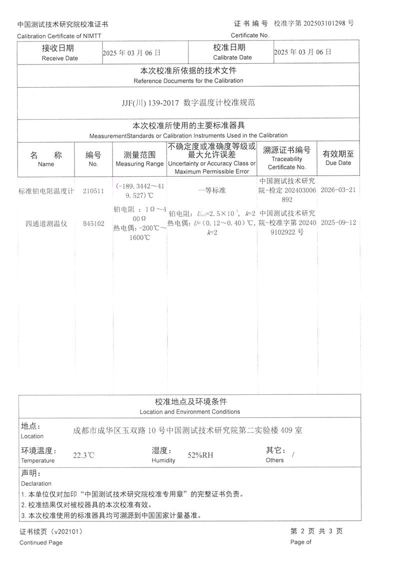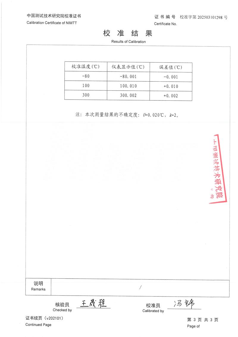 高精度數(shù)字溫度計(jì)(-80~300℃)校準(zhǔn)證書 2025-3-10 本文被閱讀 5043 次