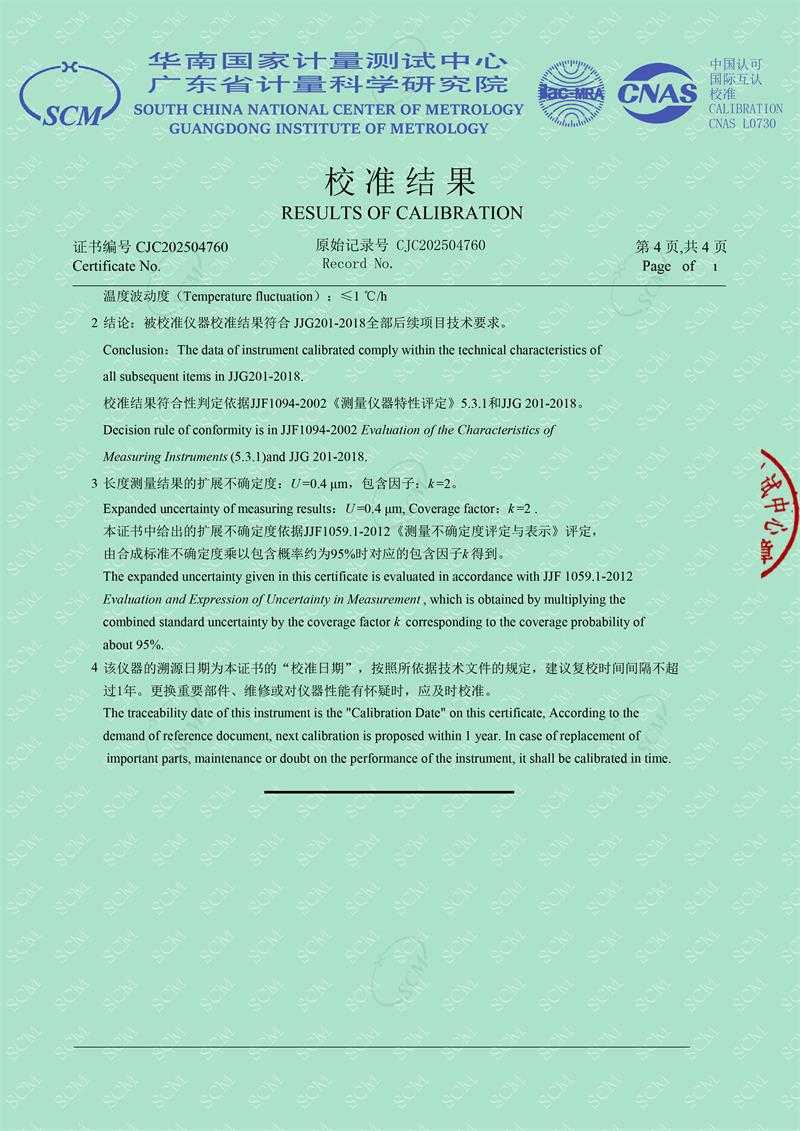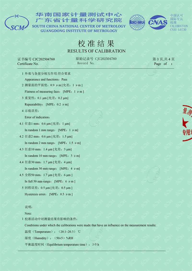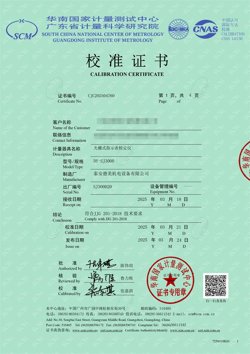 光柵式指示表檢定儀校準證書 2025-4-3 本文被閱讀 4247 次