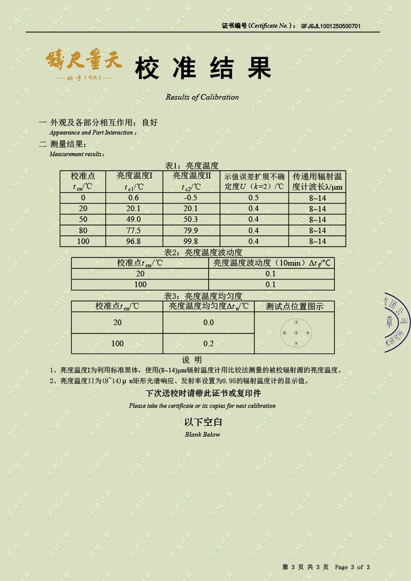 | 上一條:溫濕度巡檢儀測試系統(tǒng)校準(zhǔn)證書 | 下一條:高精度制冷恒溫槽(-80~100℃)校準(zhǔn)證書 |