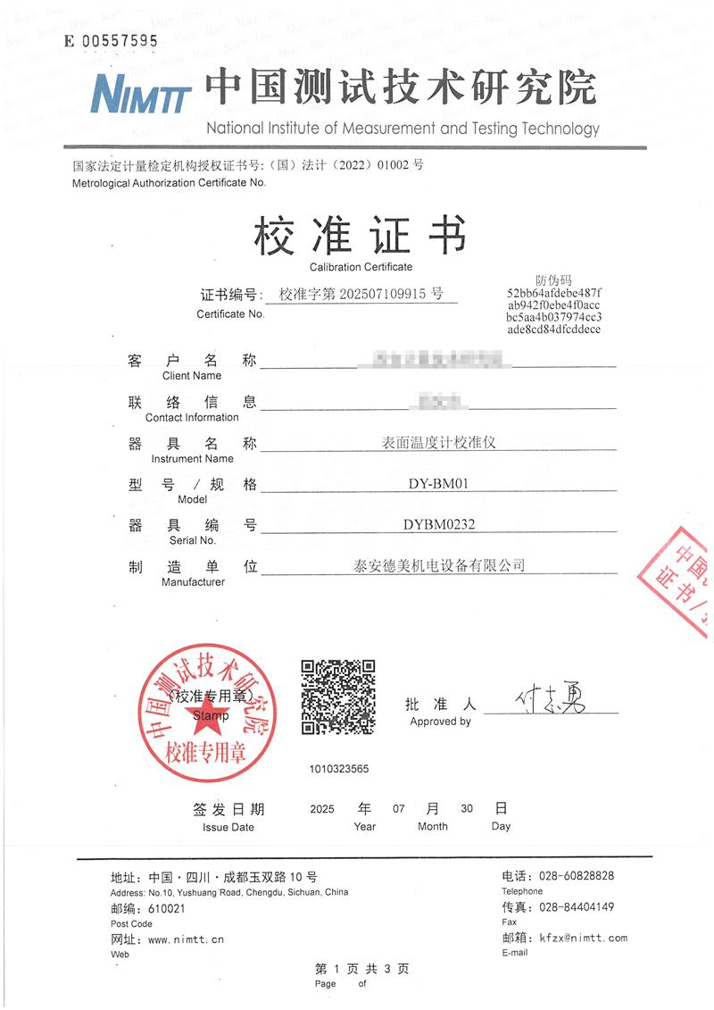 | 上一條:高精度低溫黑體(-10-100℃)校準(zhǔn)證書 | 下一條:溫度數(shù)據(jù)采集儀校準(zhǔn)證書 |