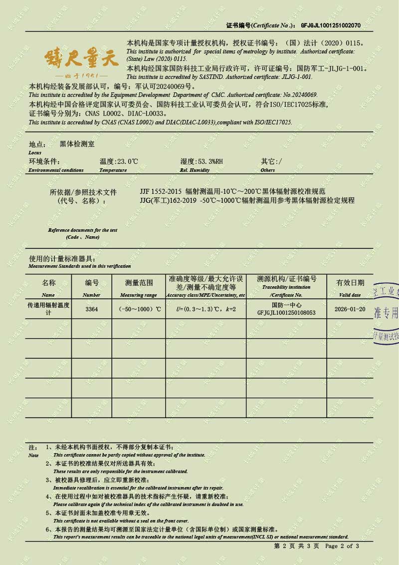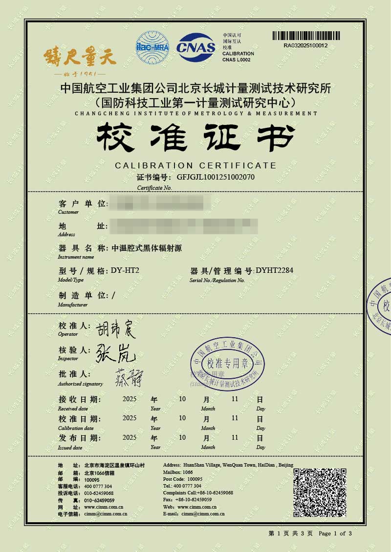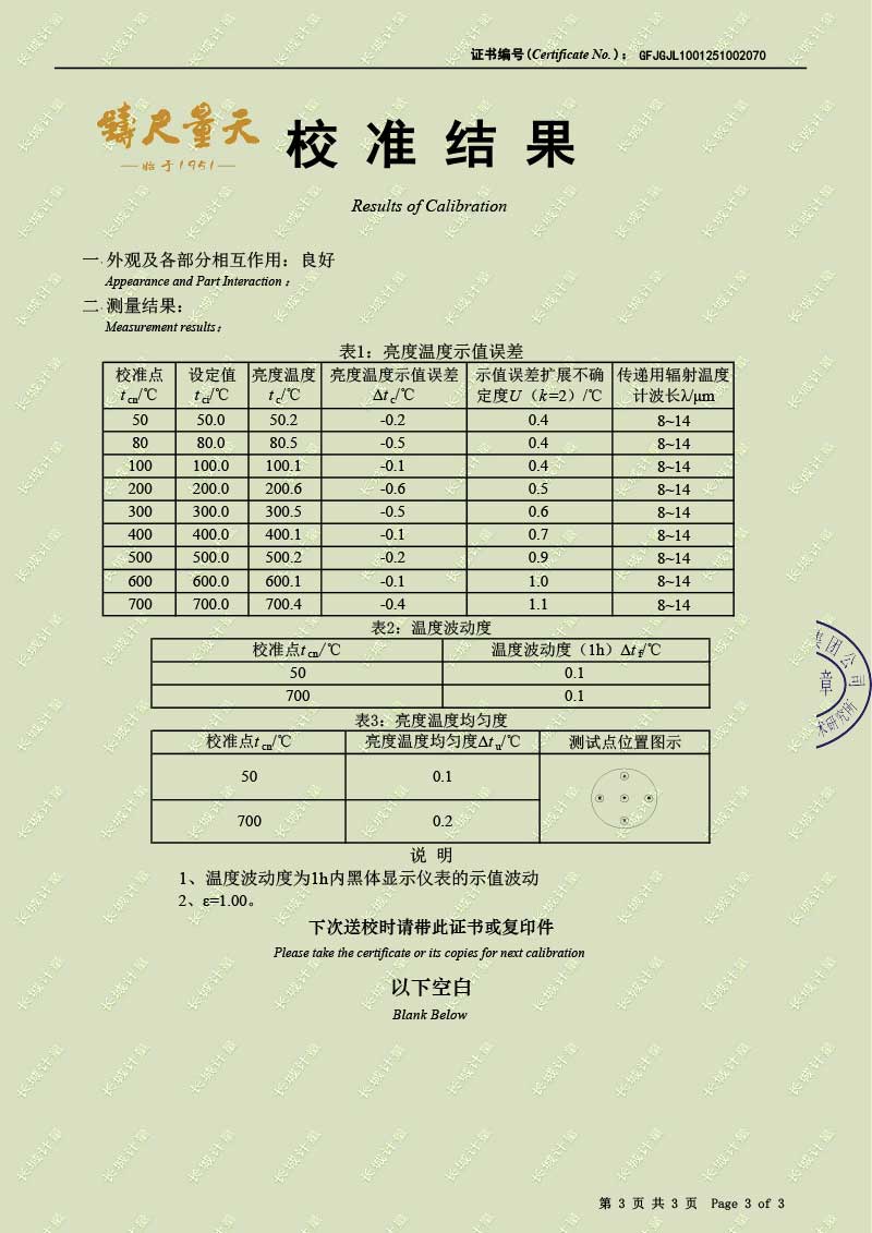 | 上一條:高溫腔式黑體輻射源(700-1600℃)校準(zhǔn)證書 | 下一條:露點(diǎn)儀校準(zhǔn)系統(tǒng)校準(zhǔn)證書 |