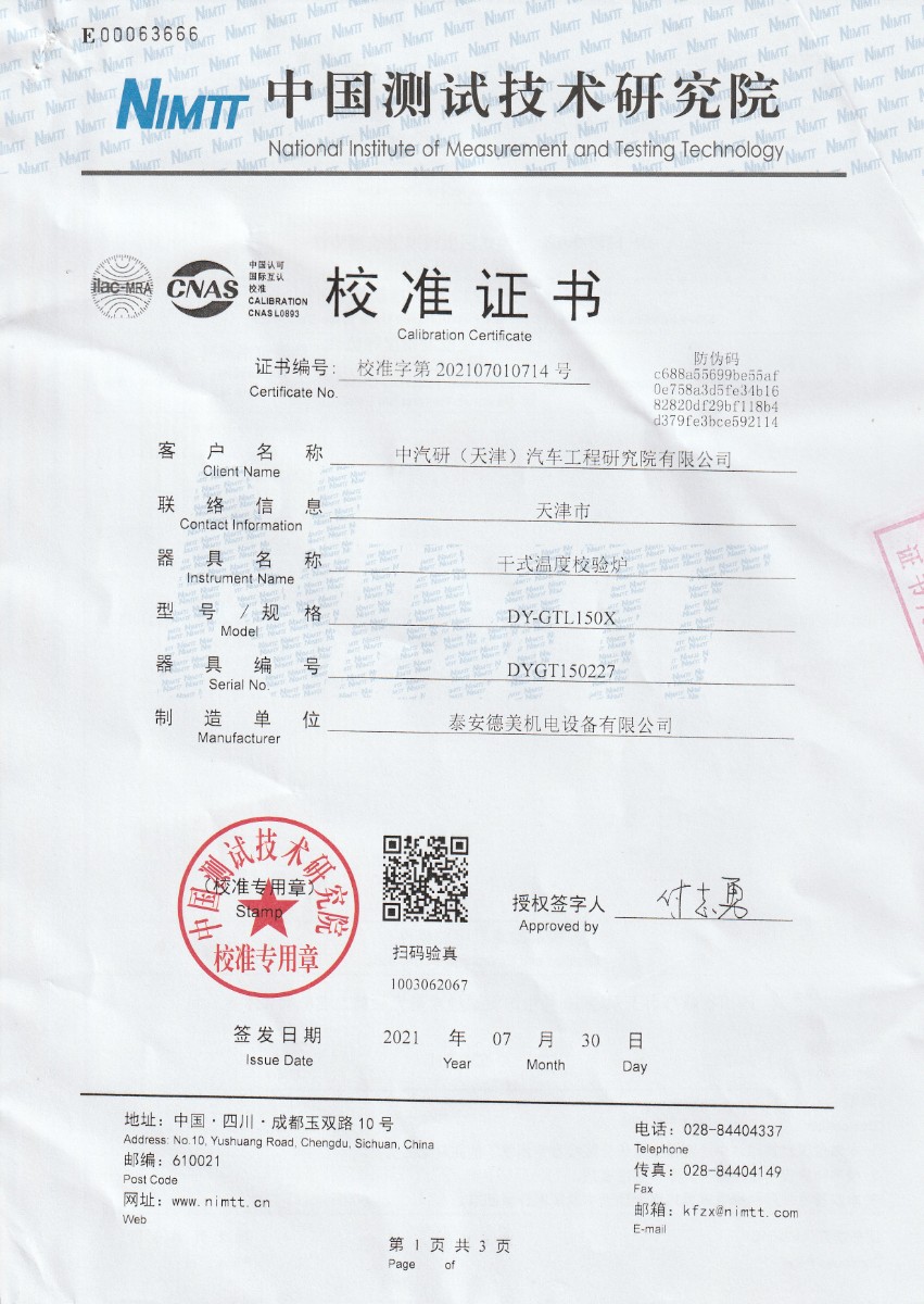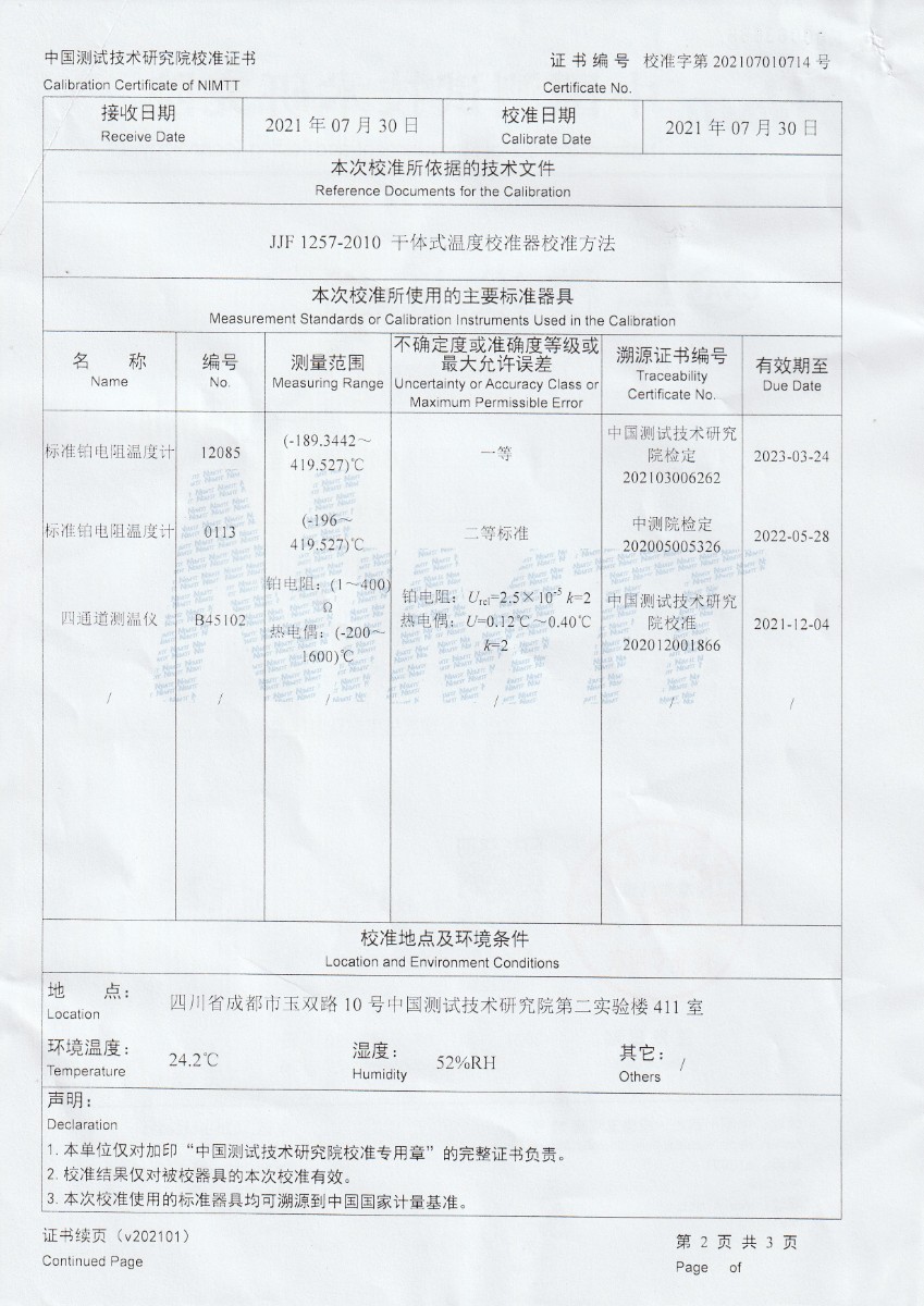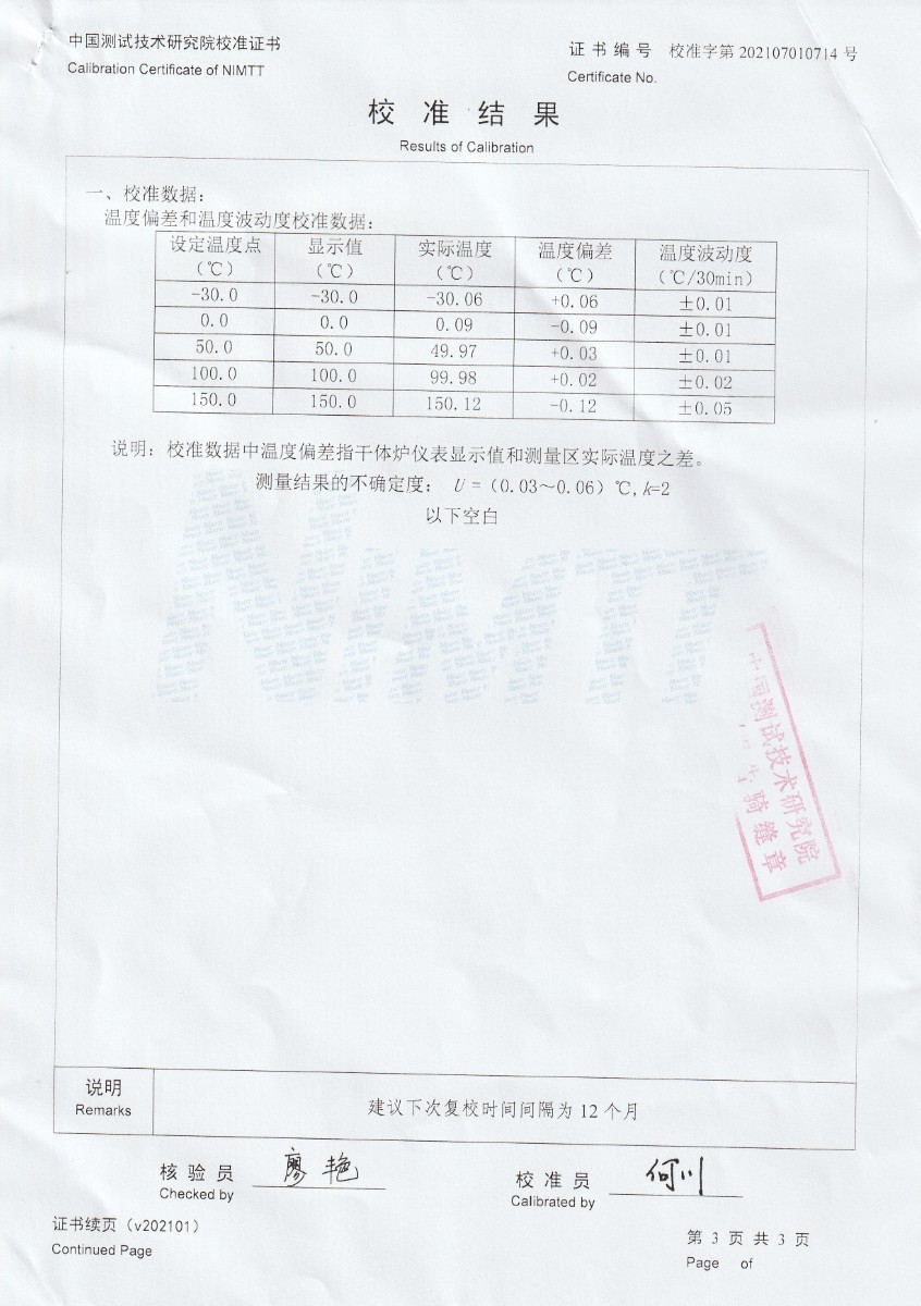 | 上一條:深圳村田科技有限公司-溫濕度檢定箱 | 下一條:高精度制冷恒溫槽(-80~100℃)校準(zhǔn)證書 |