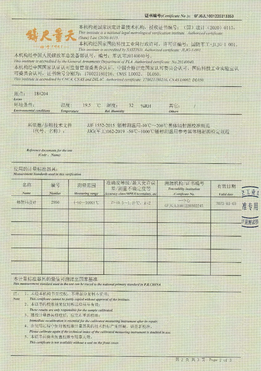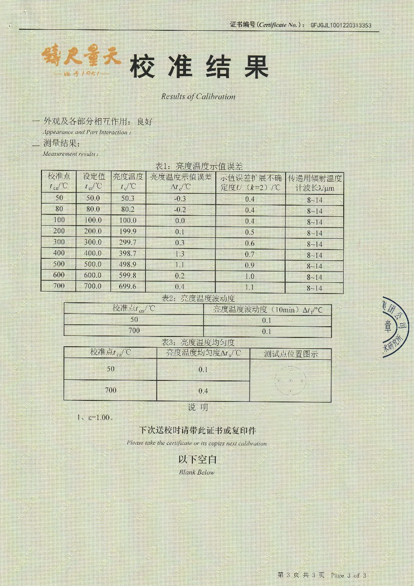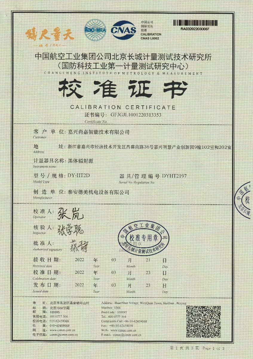| 上一條:嘉興尚嘉智能技術(shù)有限公司-黑體輻射源(DY-HT1A) | 下一條:廉金屬熱電偶檢定爐-校準證書 |