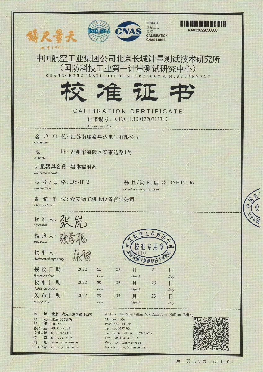 | 上一條:嘉興尚嘉智能技術(shù)有限公司黑體輻射源(DY-HT2D) | 下一條:廉金屬熱電偶檢定爐-校準(zhǔn)證書(shū) |