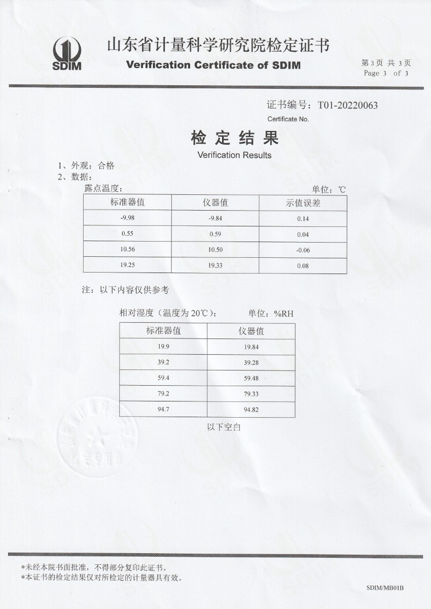 | 上一條:中睿(天津)檢驗(yàn)檢測有限公司-冷鏡式露點(diǎn)儀校準(zhǔn)證書 | 下一條:溫度數(shù)據(jù)采集儀校準(zhǔn)證書 |